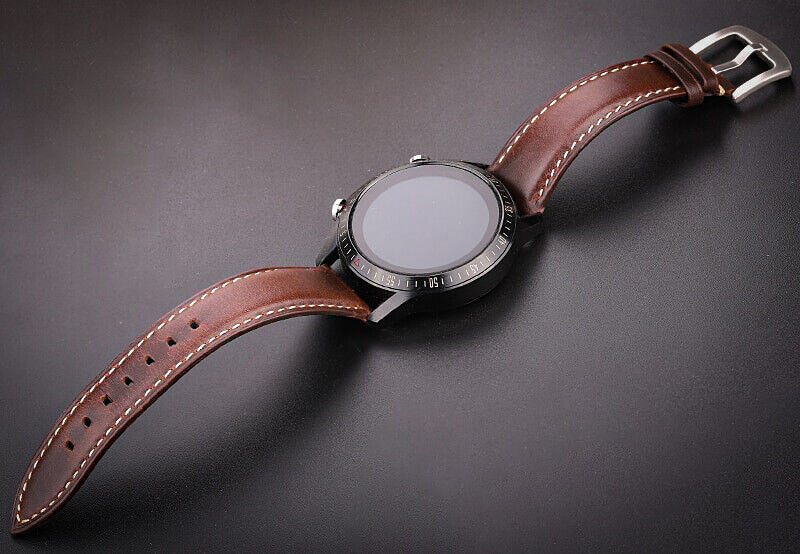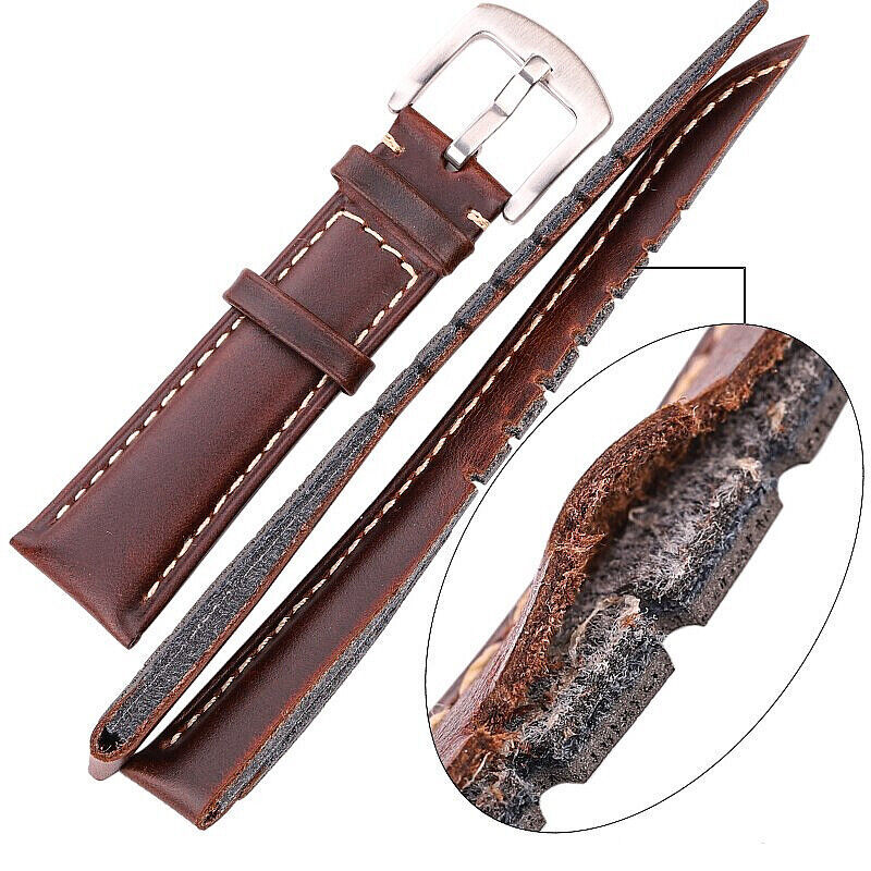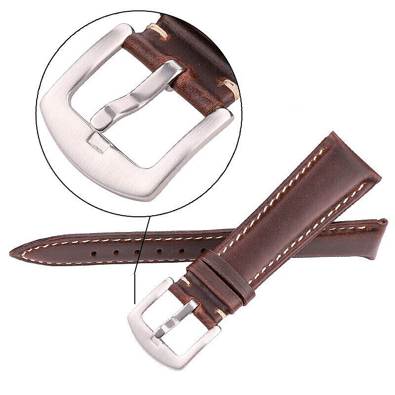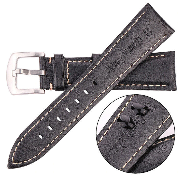 18mm Genuine Leather Black/Dark Brown White Stitching Watch Strap/Watchband/Belt