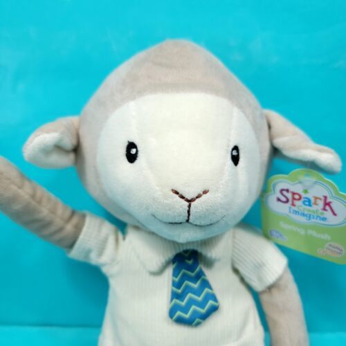 Lamb Sheep Blue Grey Neck Tie Plush Easter Rattle Lovey Stuffed Animal 20" NEW