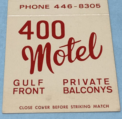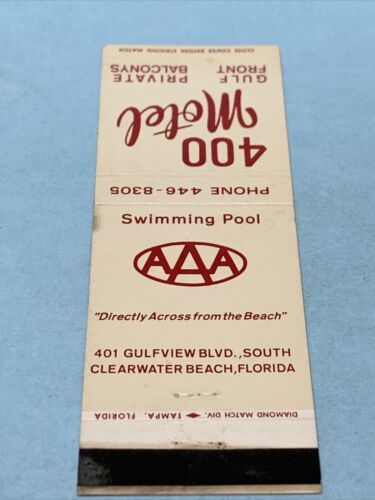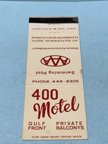 Front Strike Matchbook Cover 400 Motel Gulf Front Clearwater Beach, Fla gmg