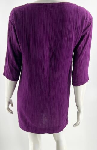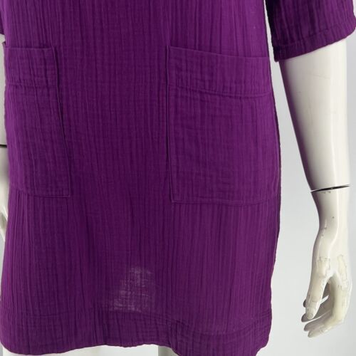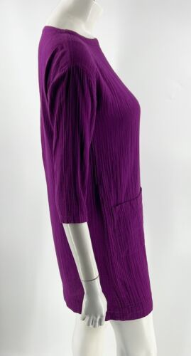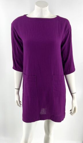 Eileen Fisher Shift Dress Size PP (2 US) Purple Cotton Crinkle Texture Boat Neck