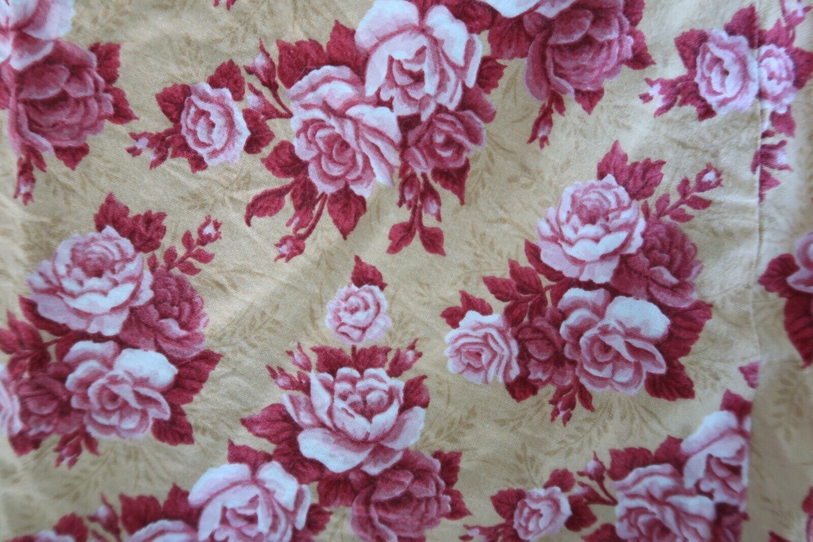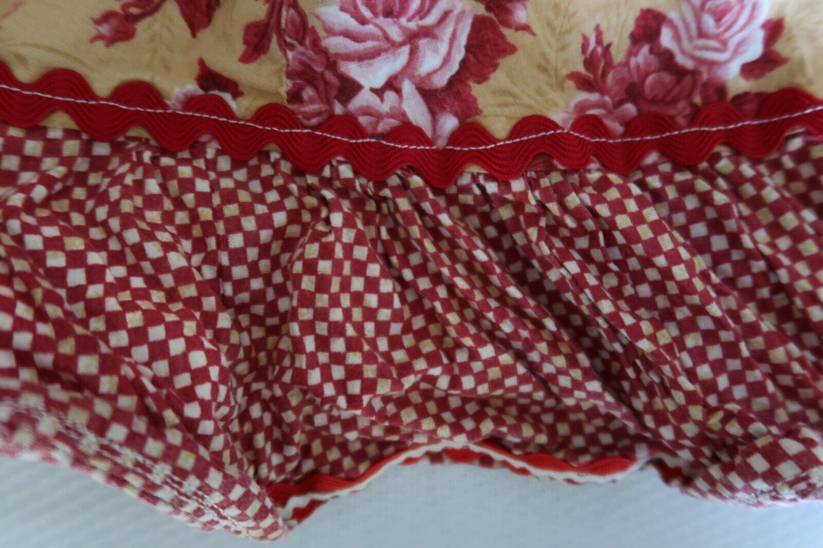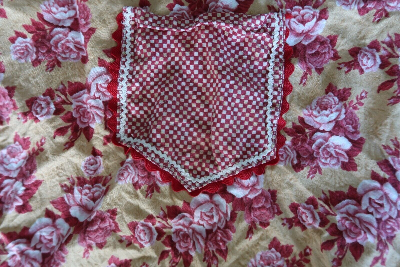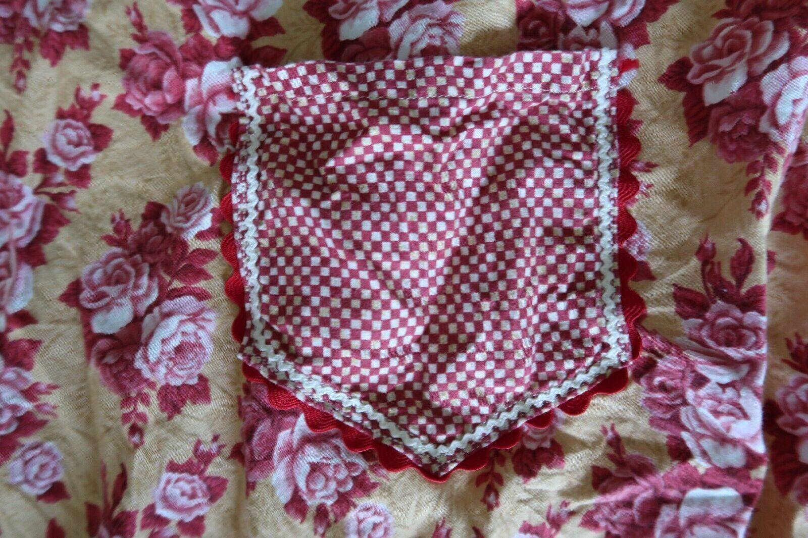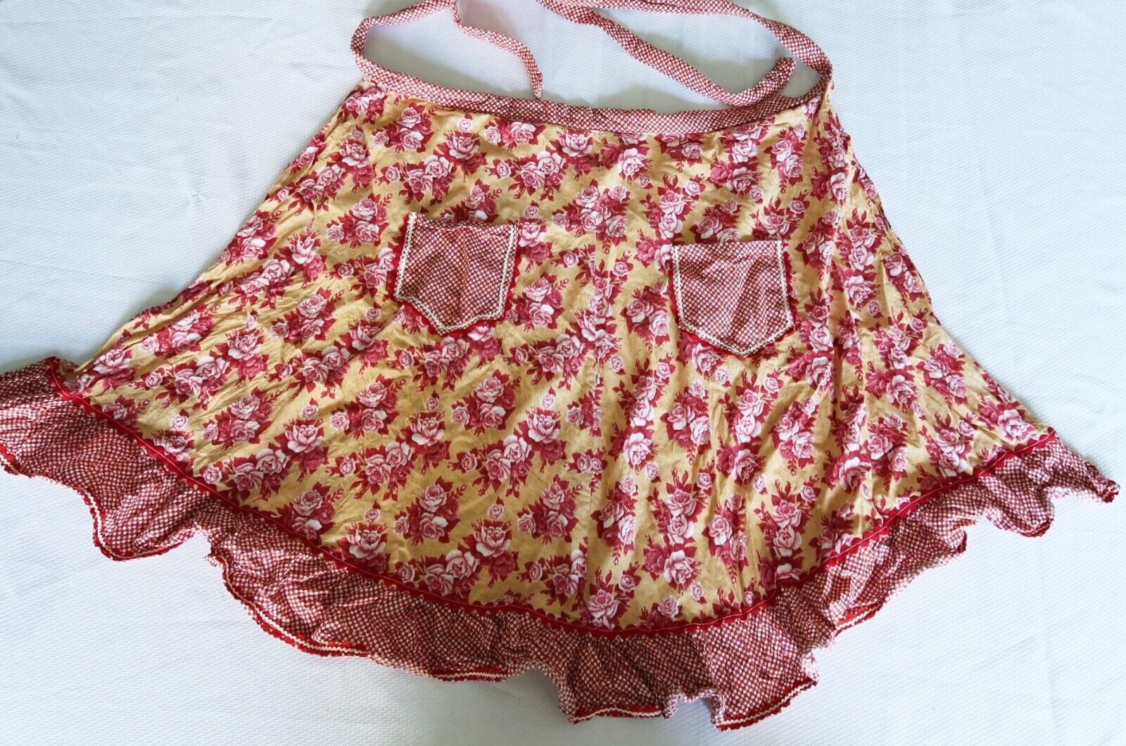 Lovely vintage pink & pale yellow flower & gingham pattern half apron