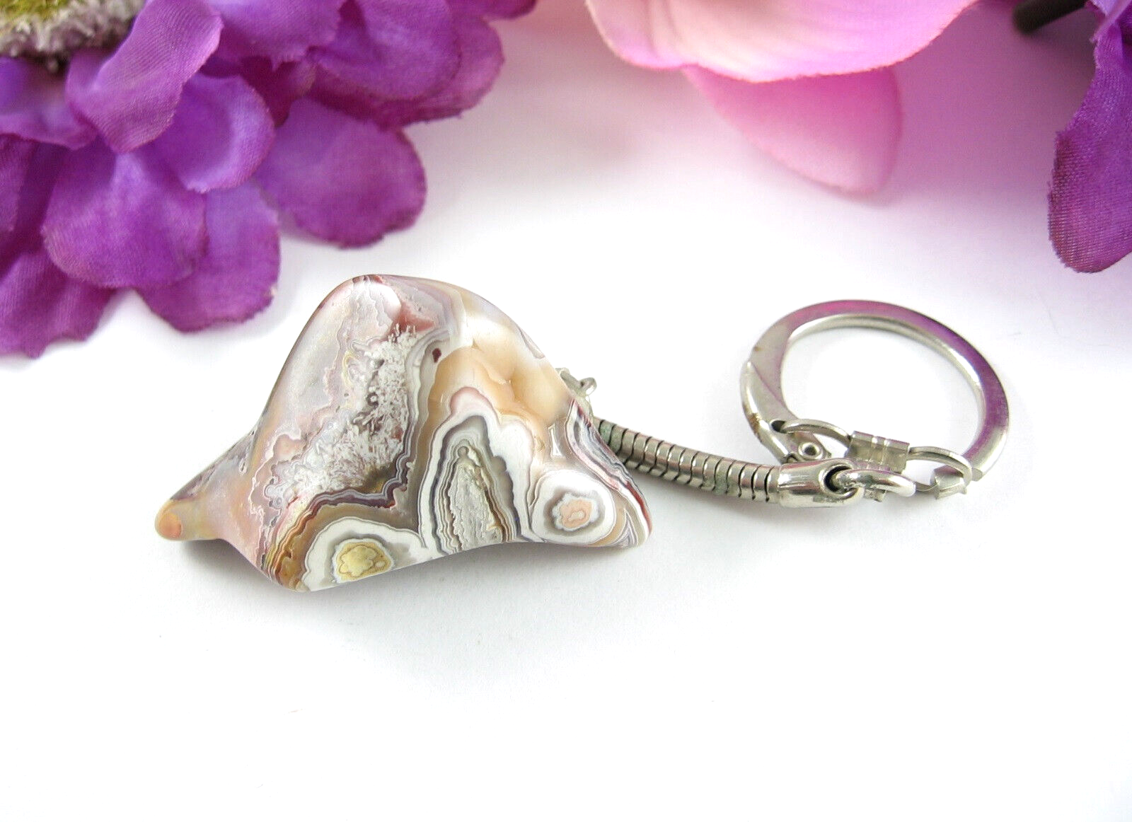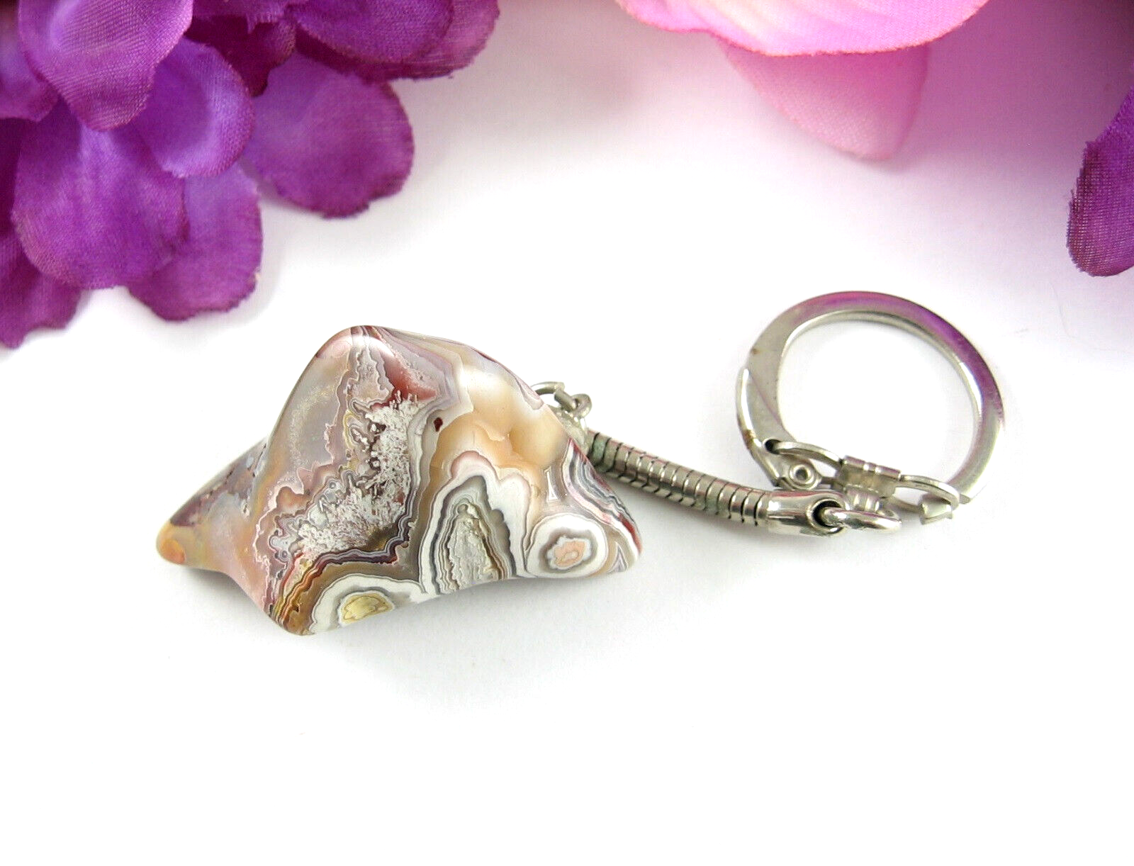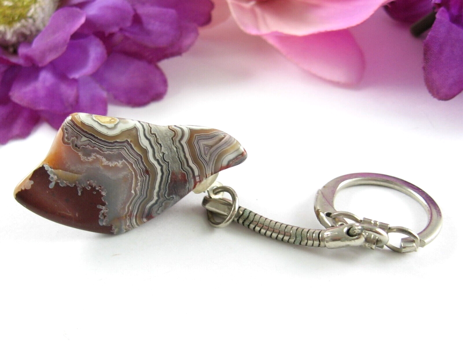 Brown AGATE STONE Keychain Vintage Polished and similar items