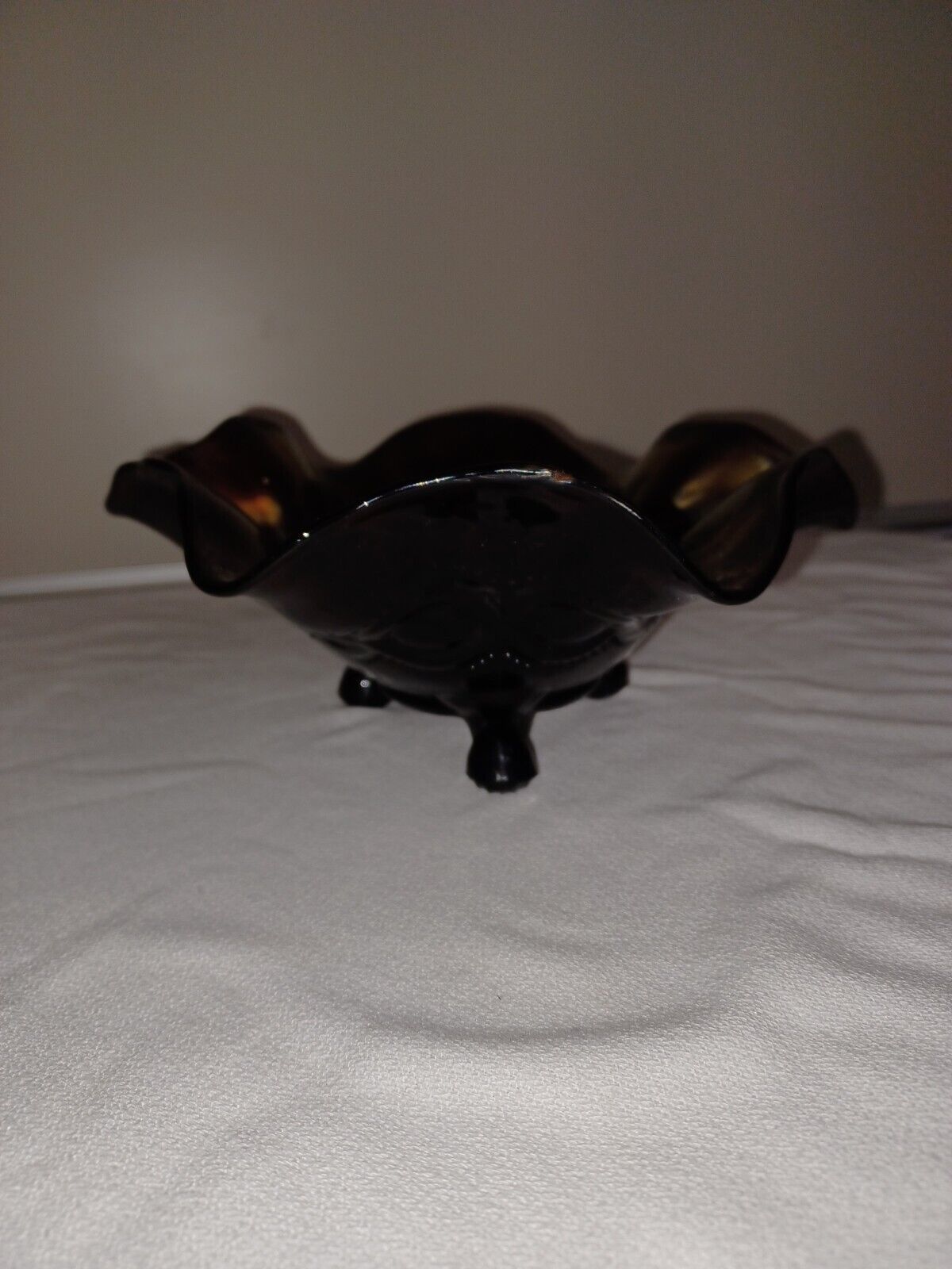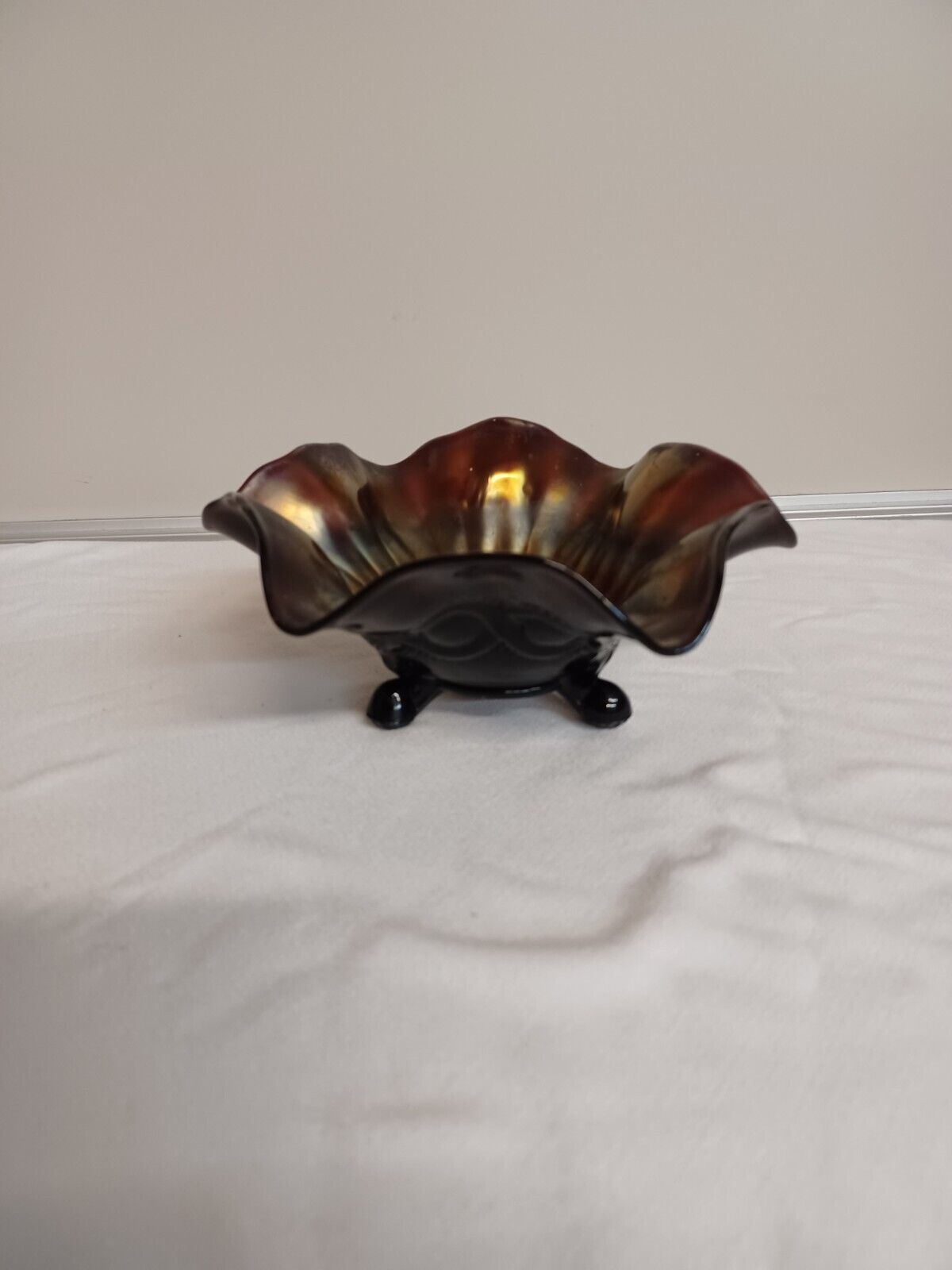 Antique Northwood 8" Amethyst Carnival Glass Footed Ruffled Bowl