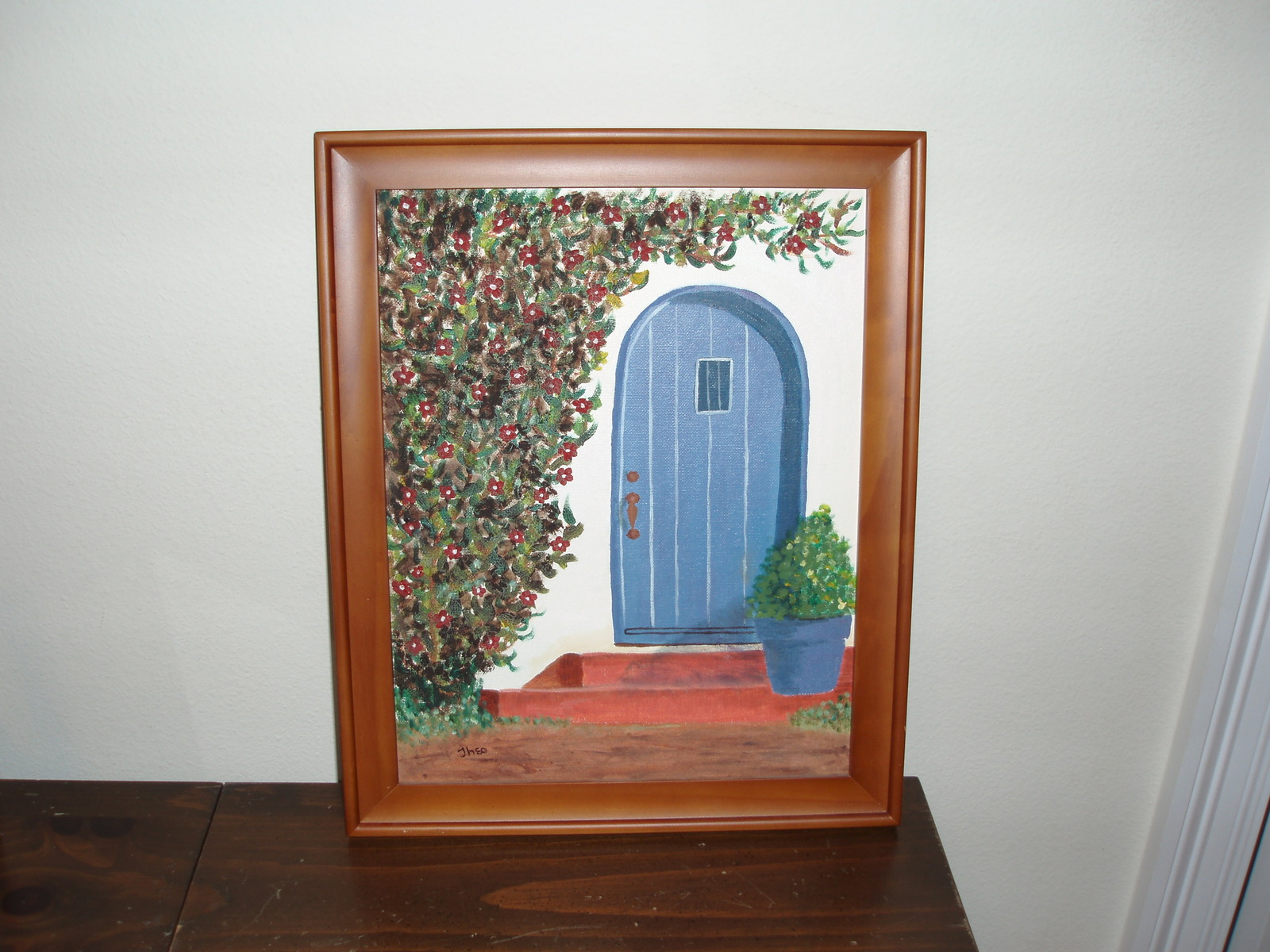 Painting is 11"by 14". Framed in wood. OOAK original oil. Artist's quality paints. Sold with frame. Ready to hang. Theme is Mediterranean.