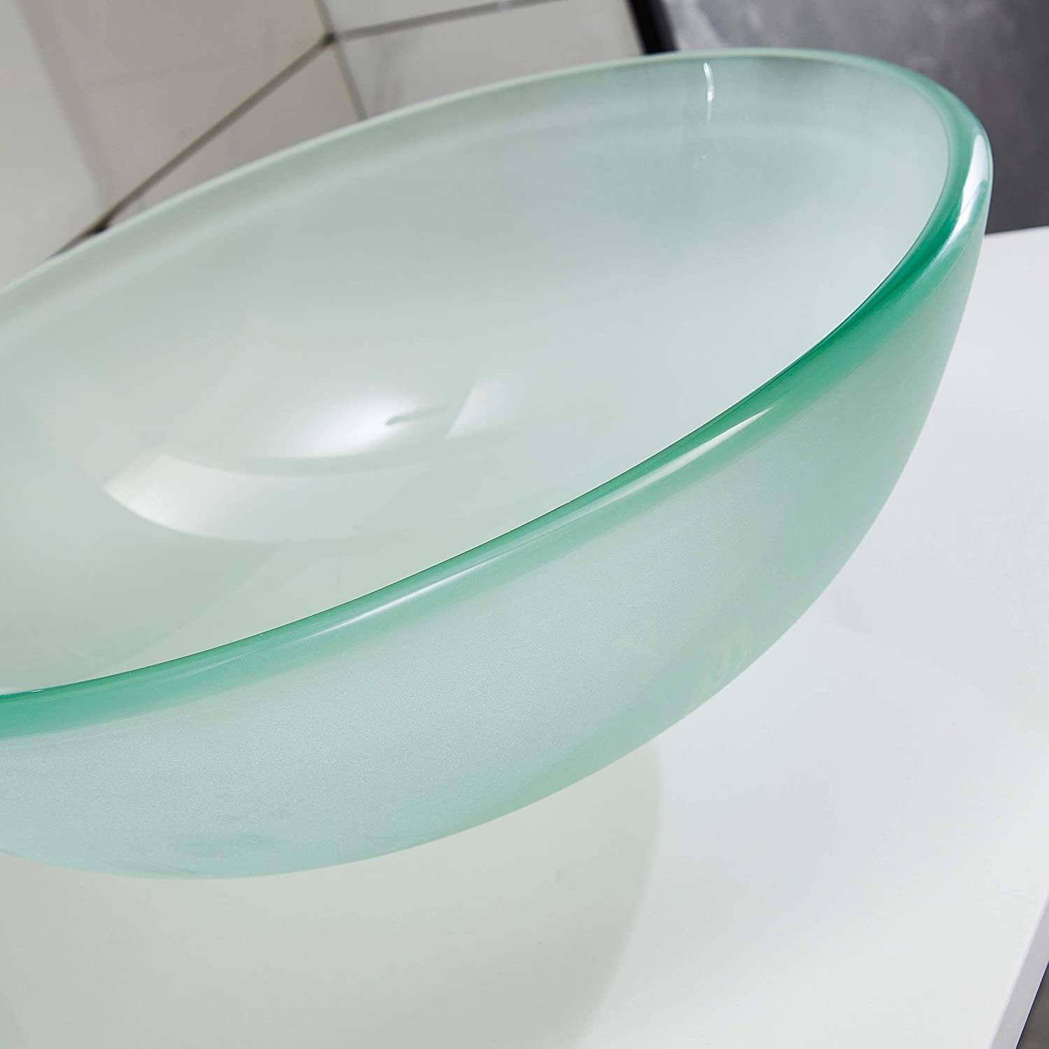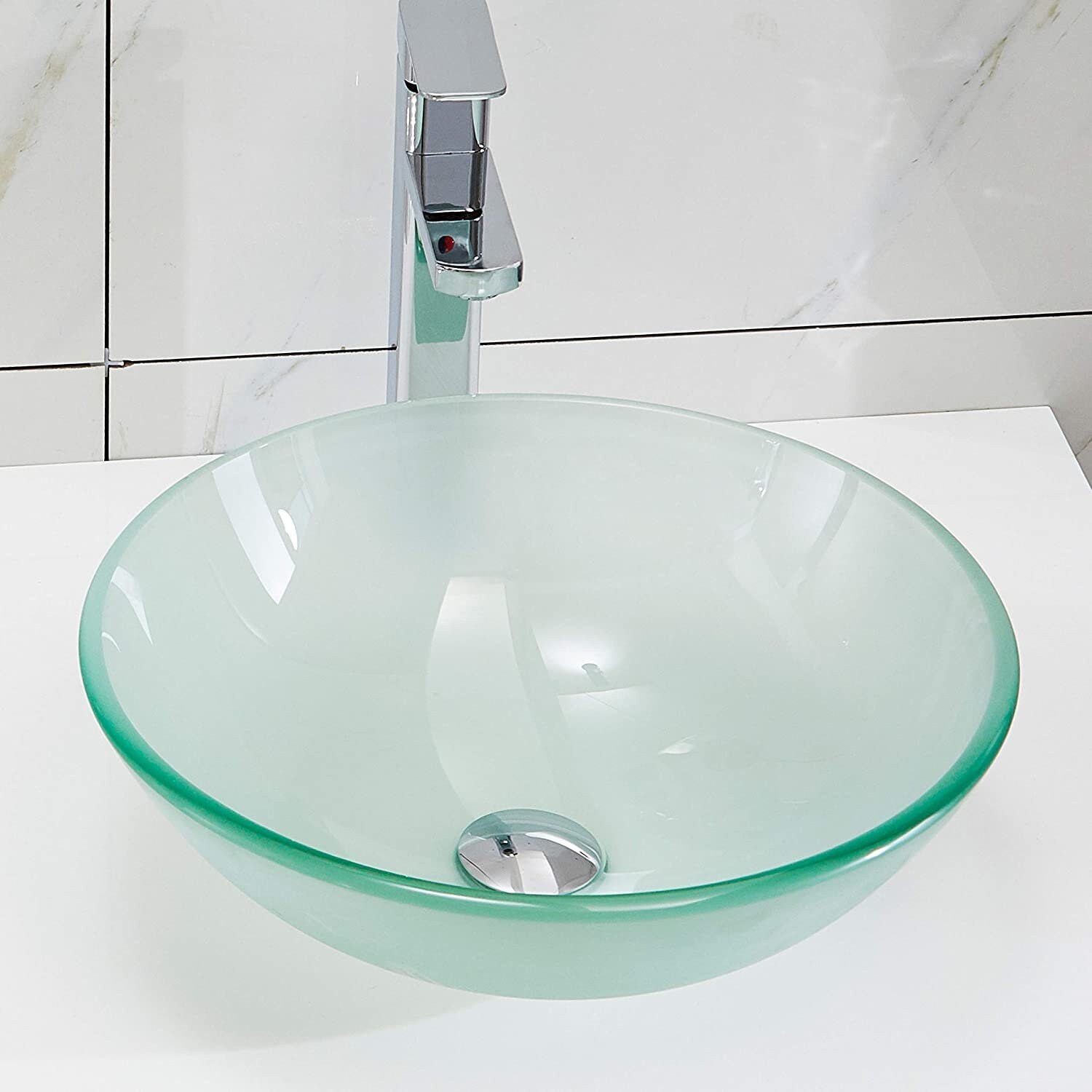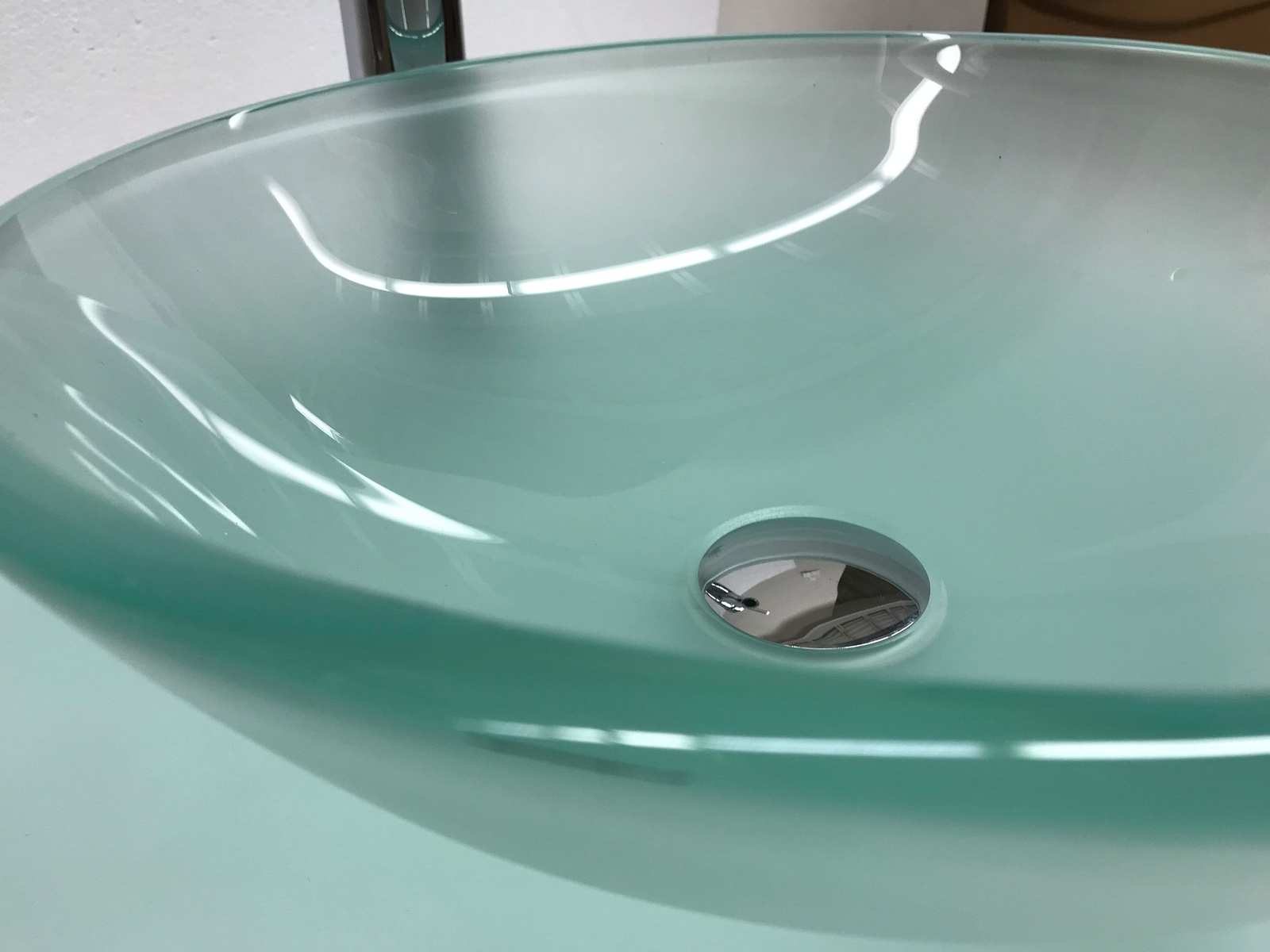Natural Modern Frosted Tempered Glass Vessel Bowl Sink Standard Pop Up in chrome
