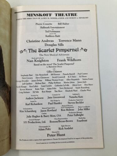 1998 Playbill Minskoff Theatre Christine Andreas in The Scarlet Pimpernel VG