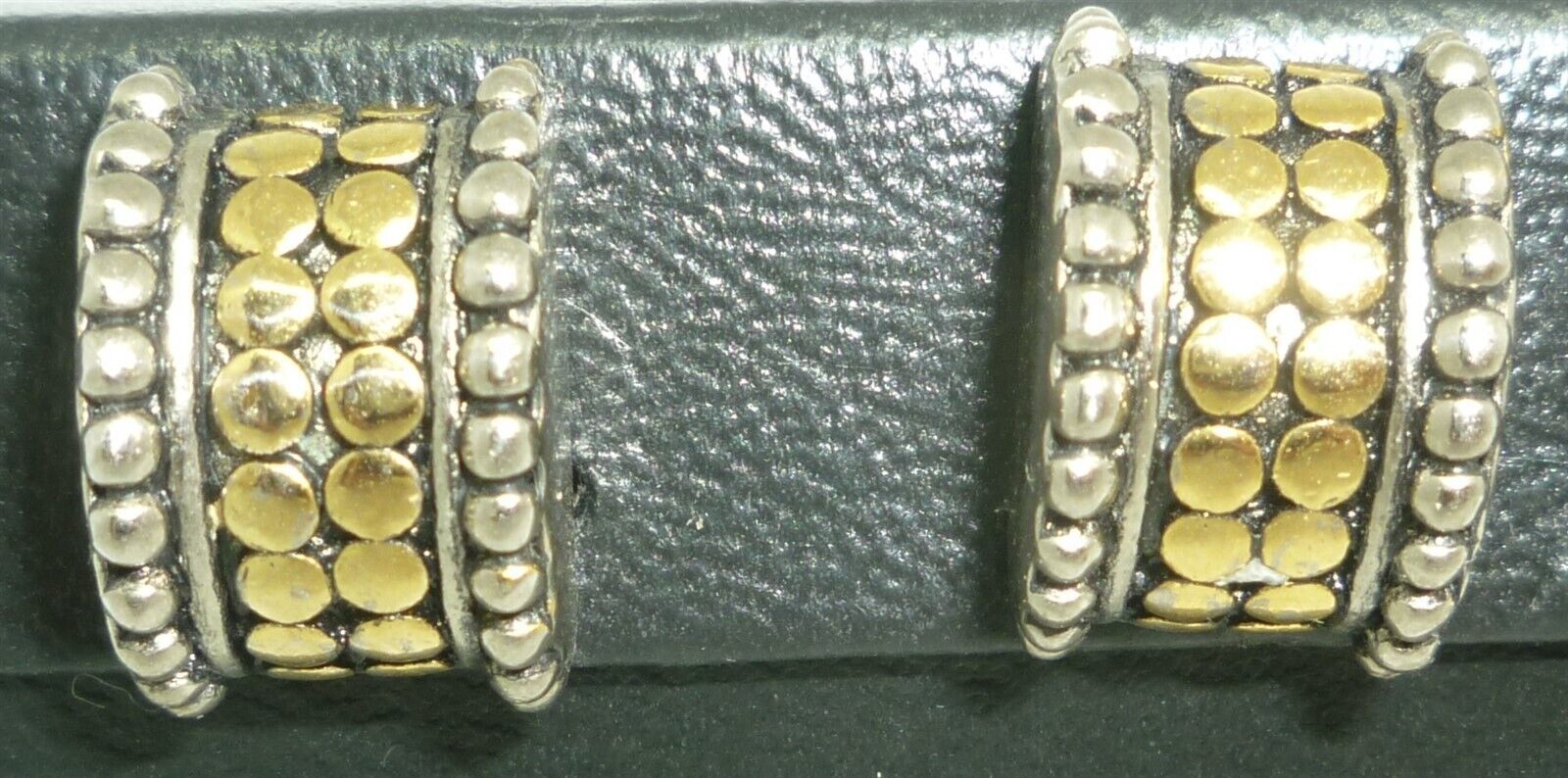 VINTAGE TWO TONE METAL POST EARRINGS HALF RING MOON