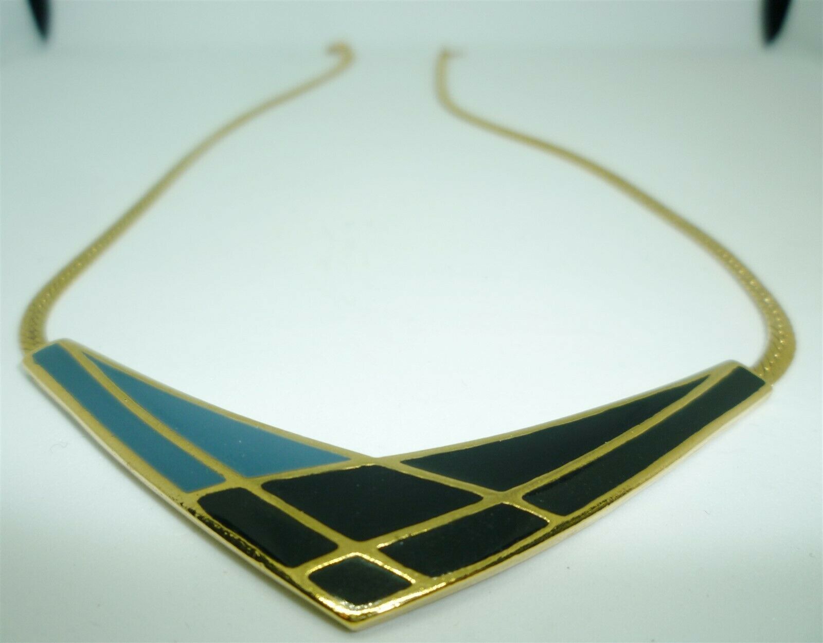VINTAGE AVON ENAMEL ON GOLD TONE METAL BIB NECKLACE