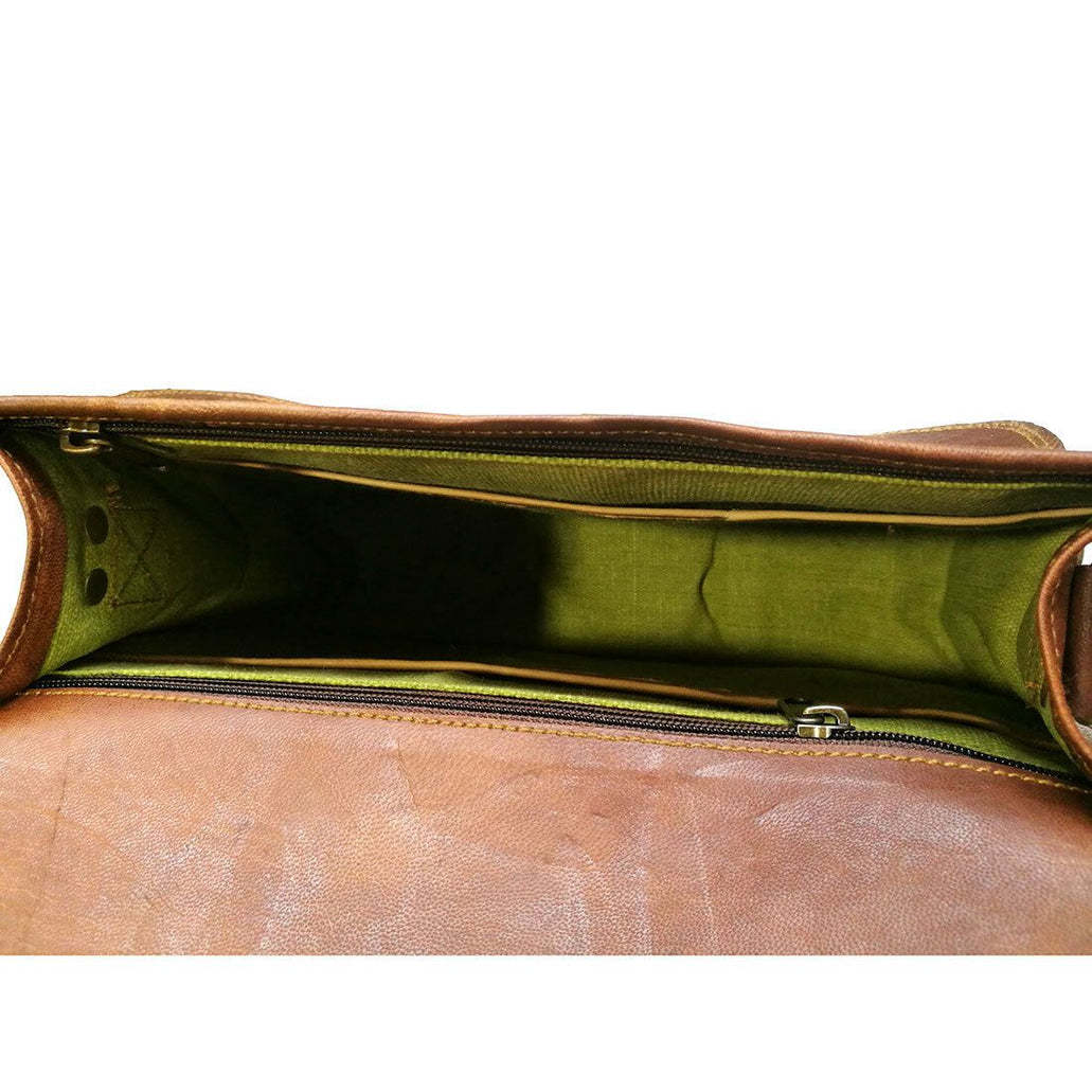 This trendy purse is made of the finest quality goat leather embellished with running stitches. We offer excellent craftsmanship to ensure uniqueness and exclusivity. We are glad to let you know that all the procedures followed in tanning the skin is natural. Thus, itโs environment-friendly and devoid of harmful chemicals. The vintage-looking, semi-glossy surface of the satchel bag is water and scratch-resistant. It is underlined by a high-quality canvas, thus giving it a neat internal finish.