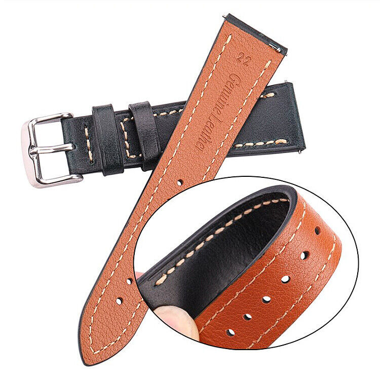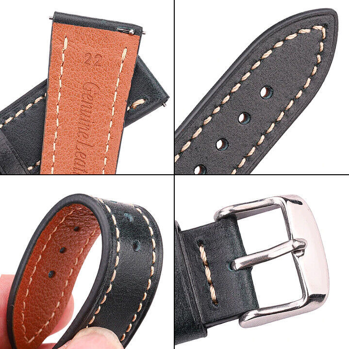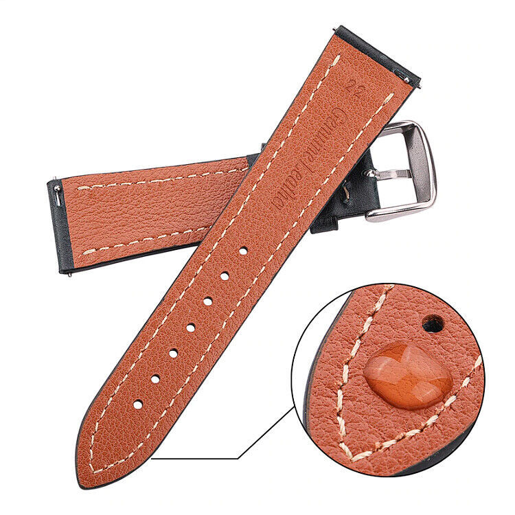 HENGRC Genuine Cow Leather Premium Watch Strap - 18mm Lug Width Premium Watchband (Polished Stainless Steel Buckle Included with Every Strap + 2 Quick Release Spring Bars