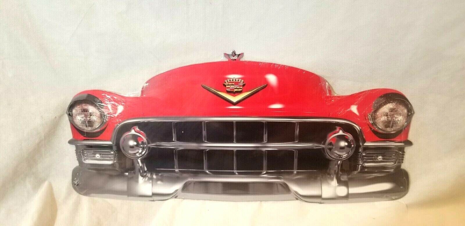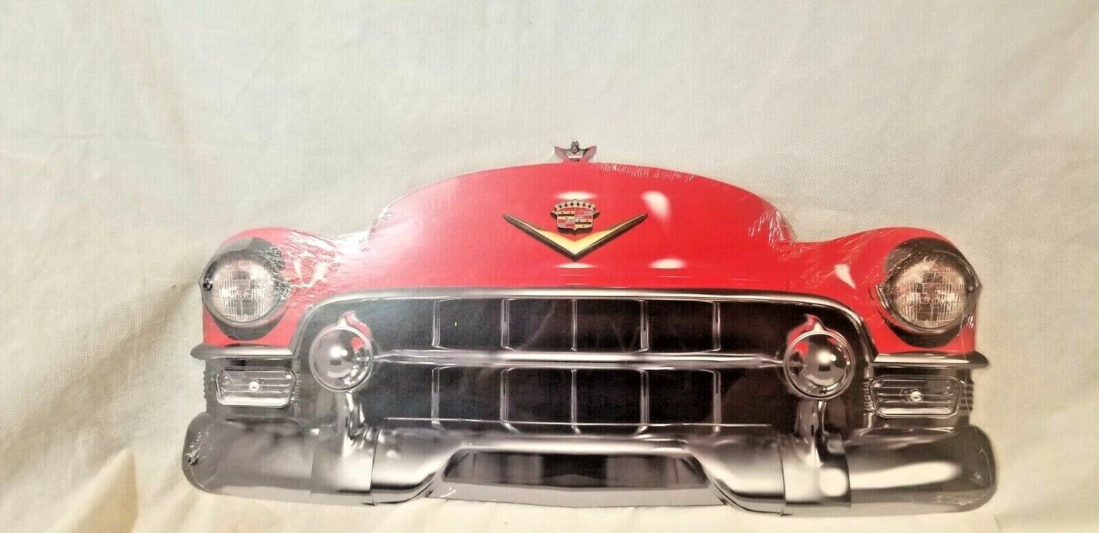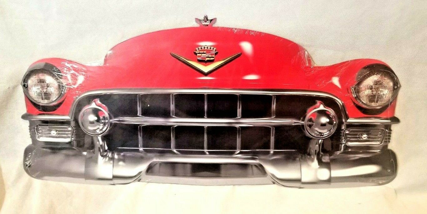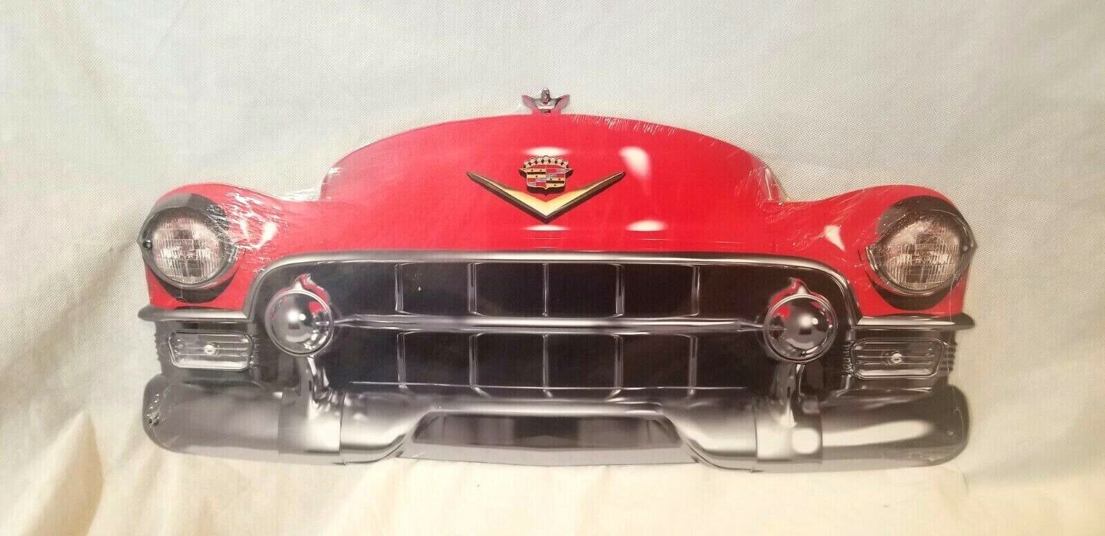 New Sealed huge 25" Front View sweet cherry Red cadillac Caddy full front end with hood ornament 1950s grill hang up display decor steel metal sign