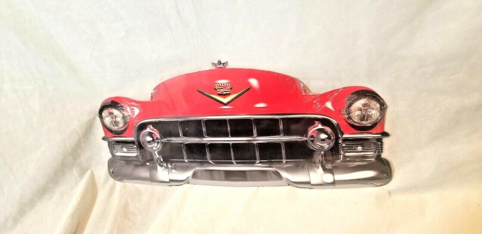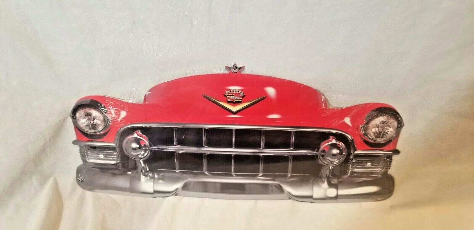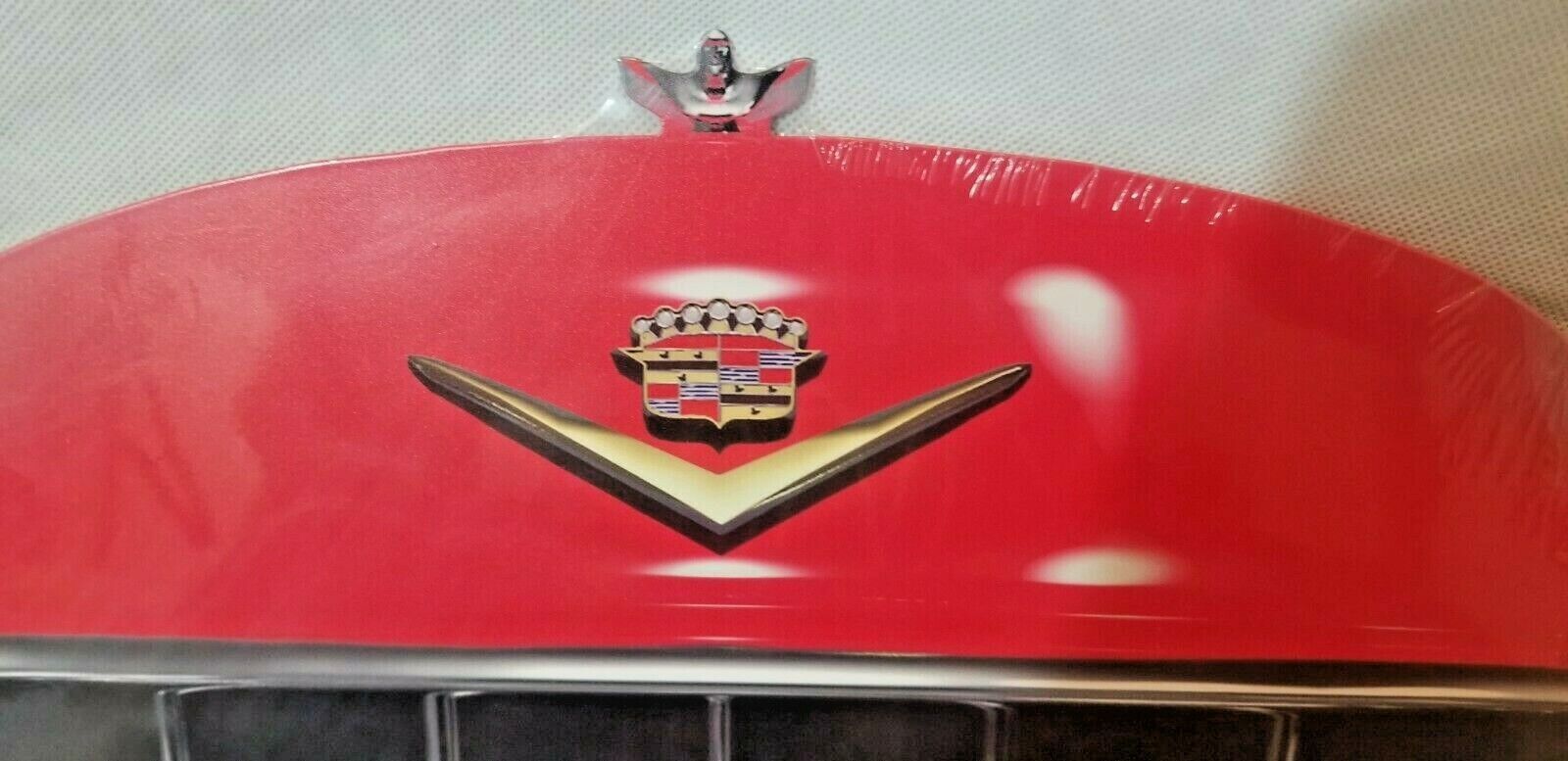 New Sealed huge 25" Front View sweet cherry Red cadillac Caddy full front end with hood ornament 1950s grill hang up display decor steel metal sign