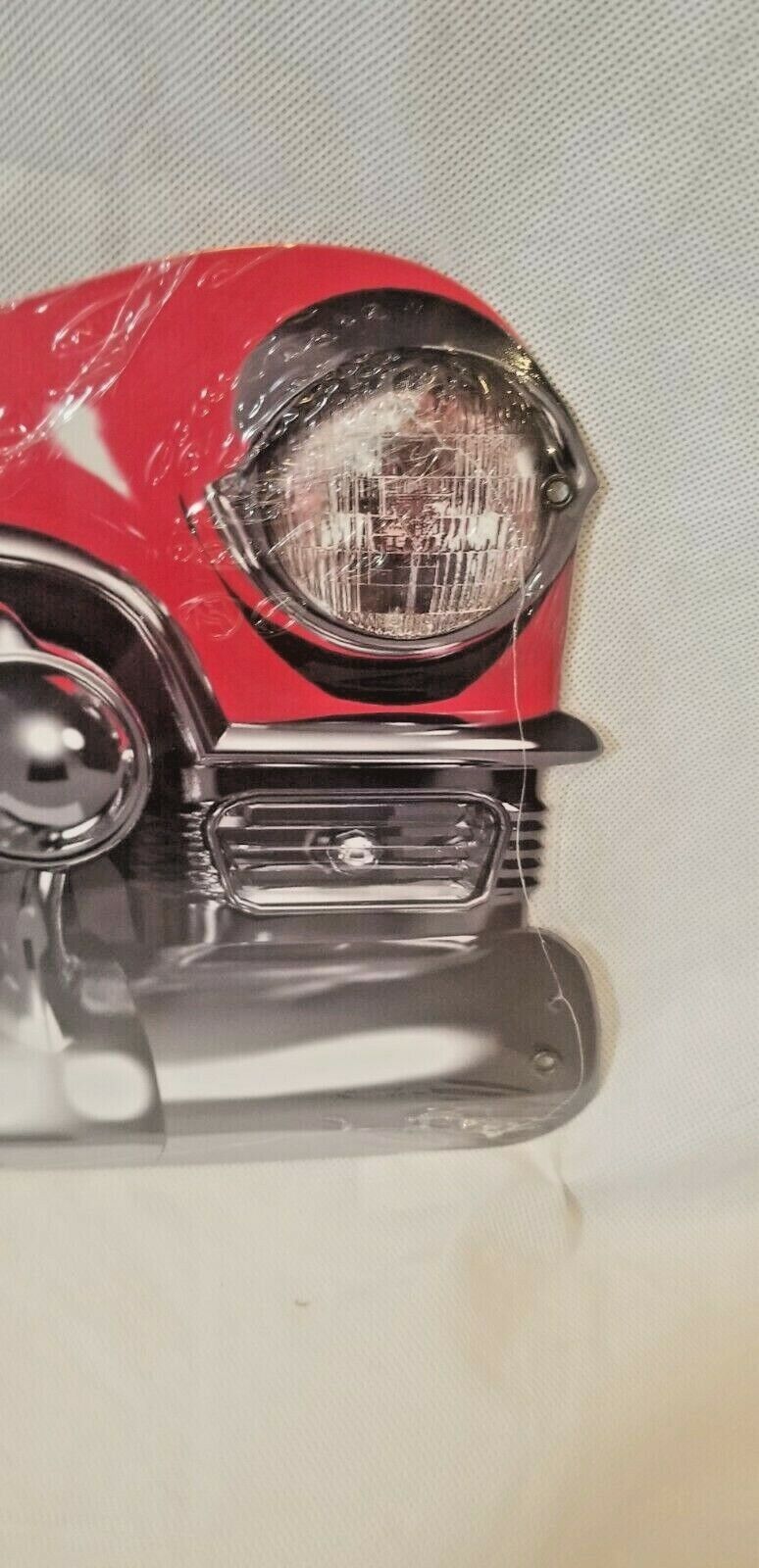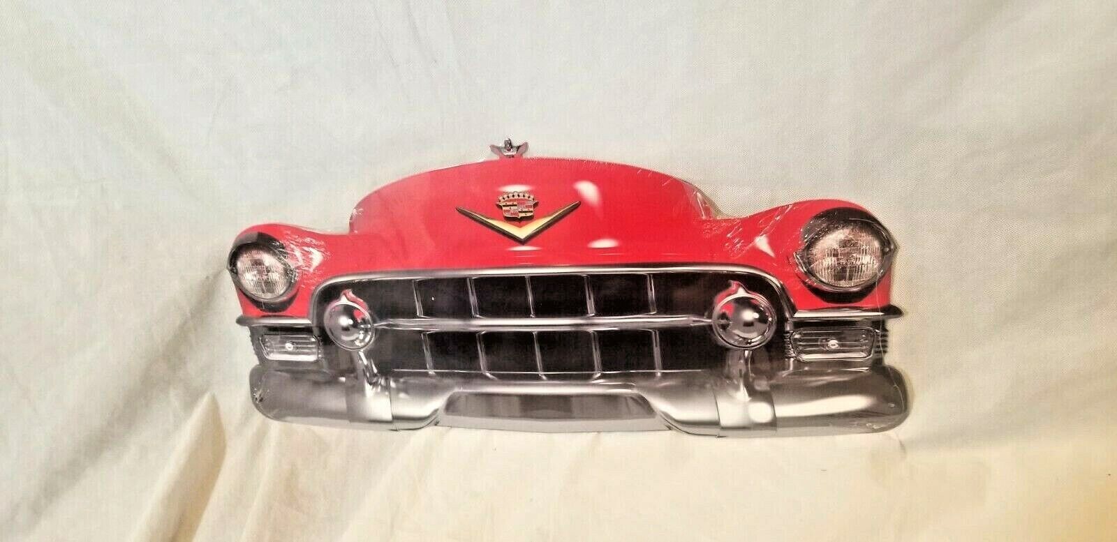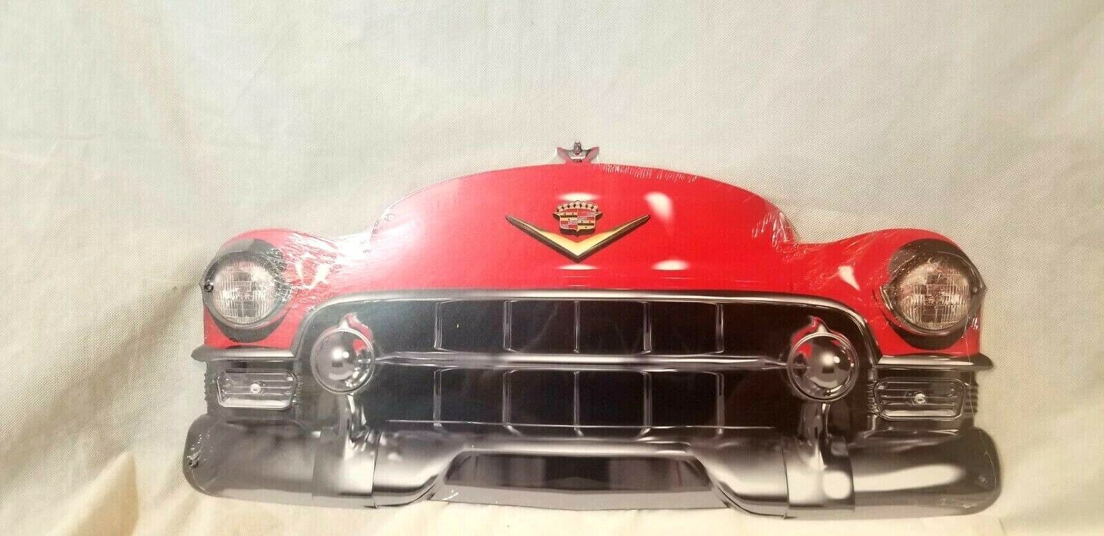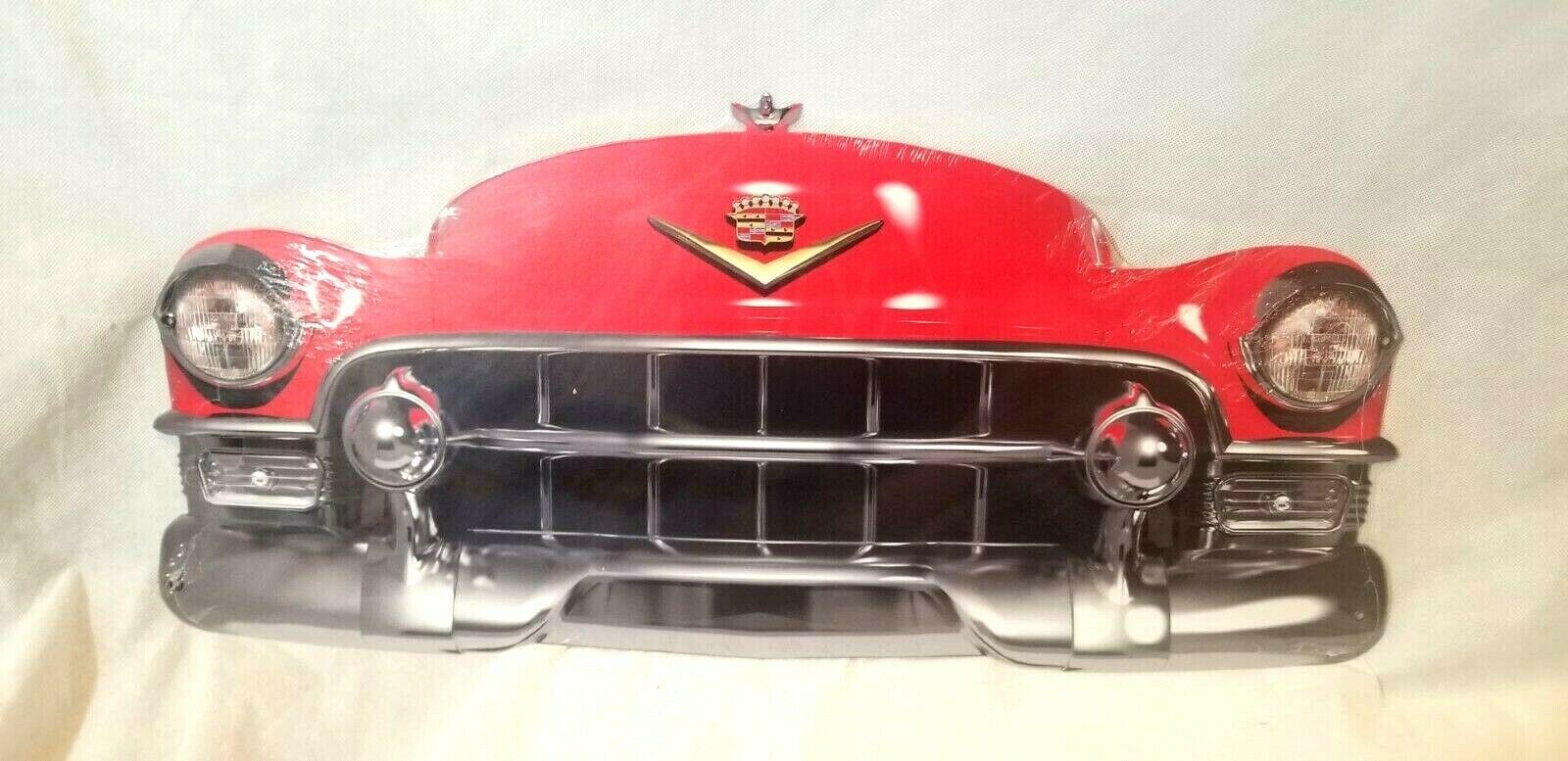 New Sealed huge 25" Front View sweet cherry Red cadillac Caddy full front end with hood ornament 1950s grill hang up display decor steel metal sign