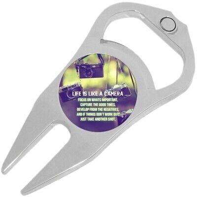 Life Is Like a Camera Quote Golf Ball Marker Divot Repair Tool Bottle Opener