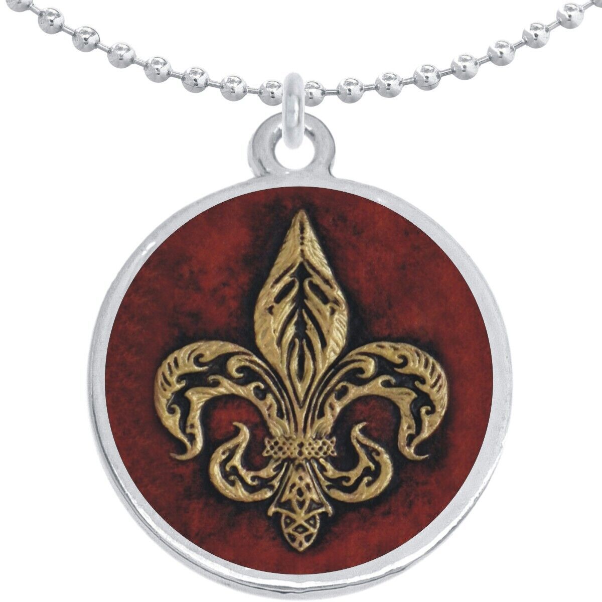 Bronze Fleur de Lis Round Pendant Necklace. High quality necklace pendant customized here in the USA and shipped quickly to you.