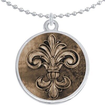 Antique Fleur de Lis Round Pendant Necklace. High quality necklace pendant customized here in the USA and shipped quickly to you.