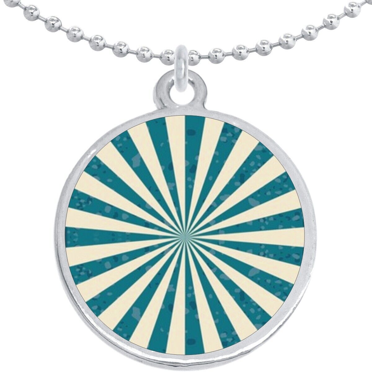 Teal White Burst Pattern Round Pendant Necklace. High quality necklace pendant customized here in the USA and shipped quickly to you.