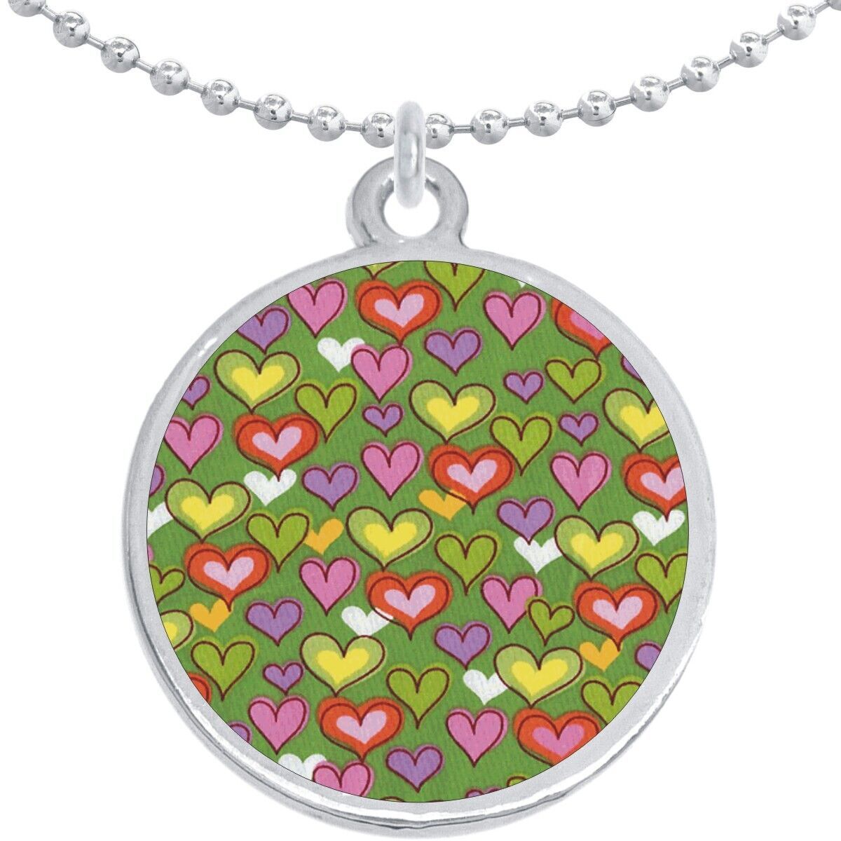Hearts on Green Round Pendant Necklace Beautiful Fashion Jewelry