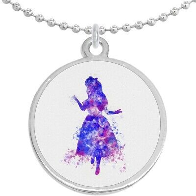 Alice in Wonderland Watercolor Round Pendant Necklace Beautiful Fashion Jewelry