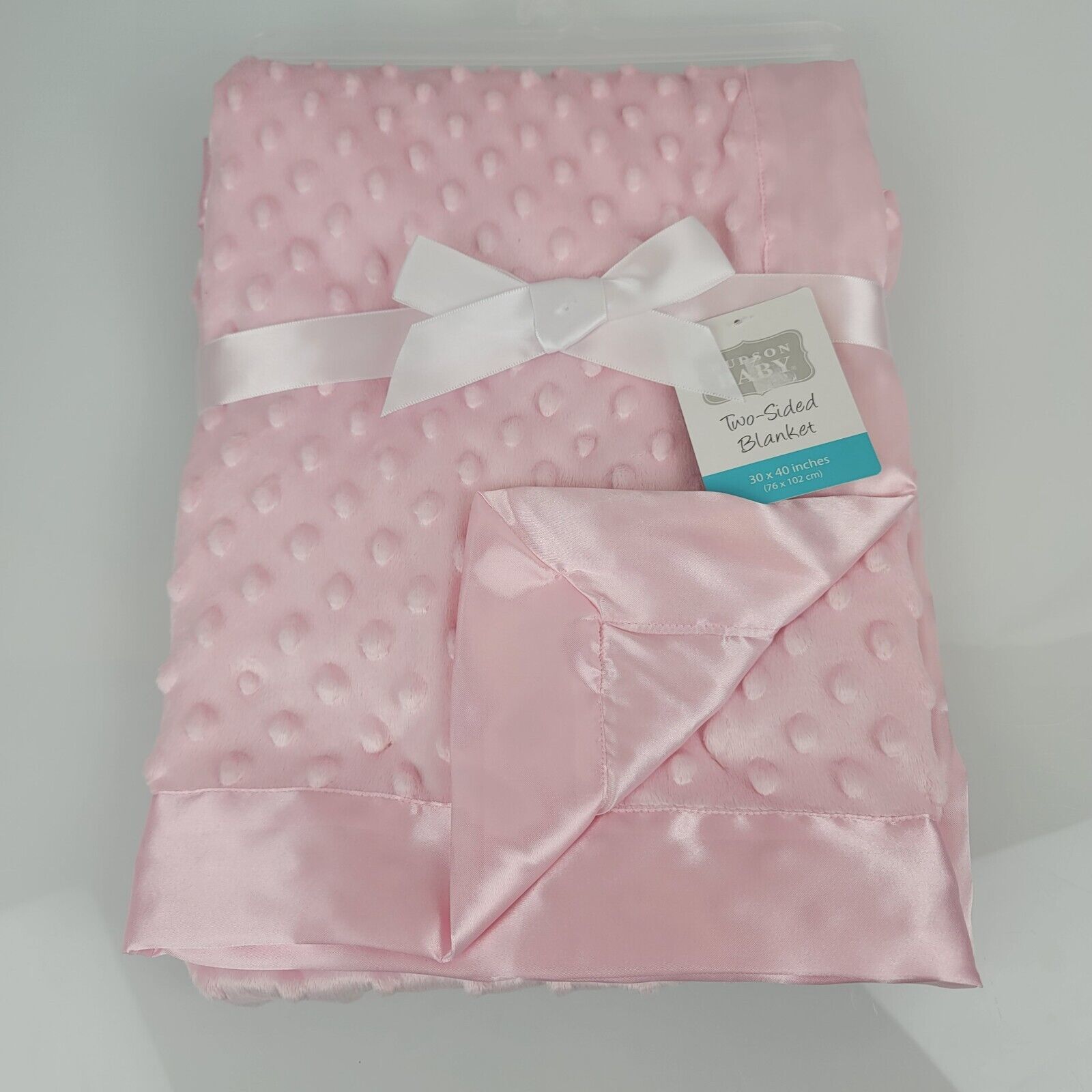 Hudson Baby Pink Minky Satin Girl Security Lovey Blanket NEW 30x40"