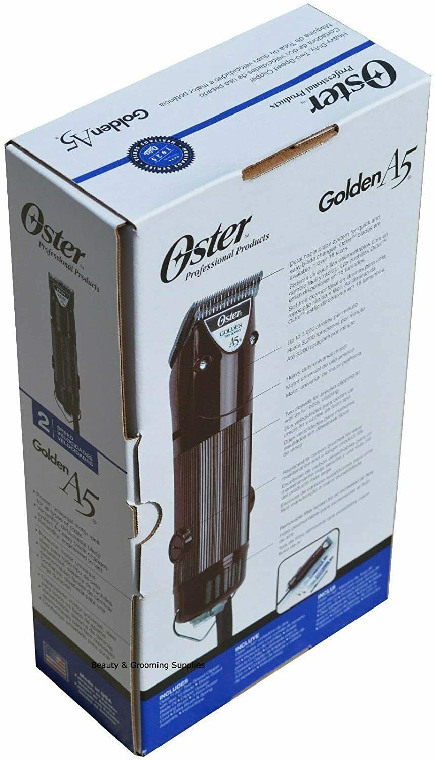The Oster Golden A5 2-Speed Clipper handles everything from general purpose grooming to precision clipping at regular and high-speed settings.