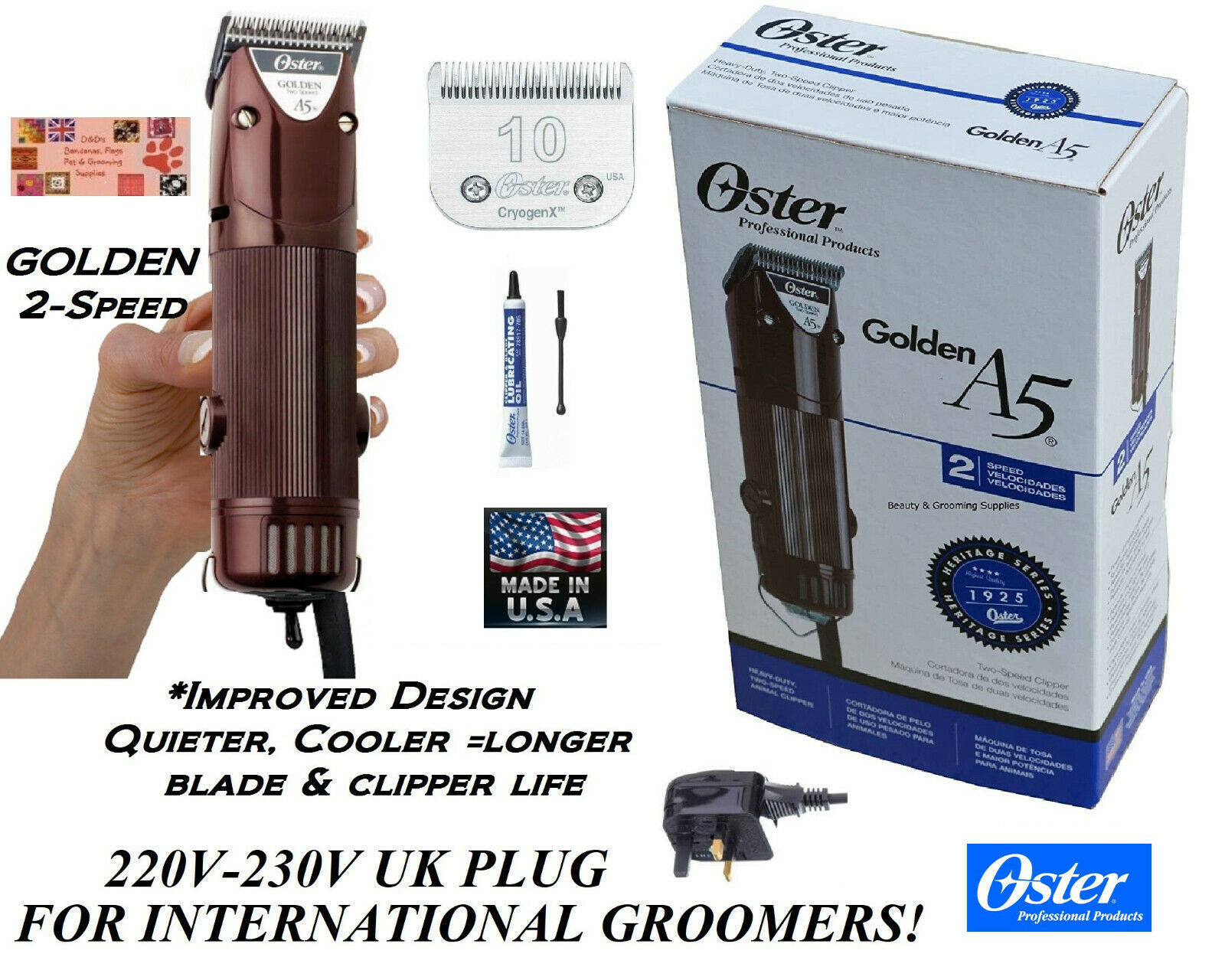 Oster A5 GOLDEN 2 Speed 220V–230V CLIPPER KIT&CryogenX 10 DETACHABLE BLADE SET