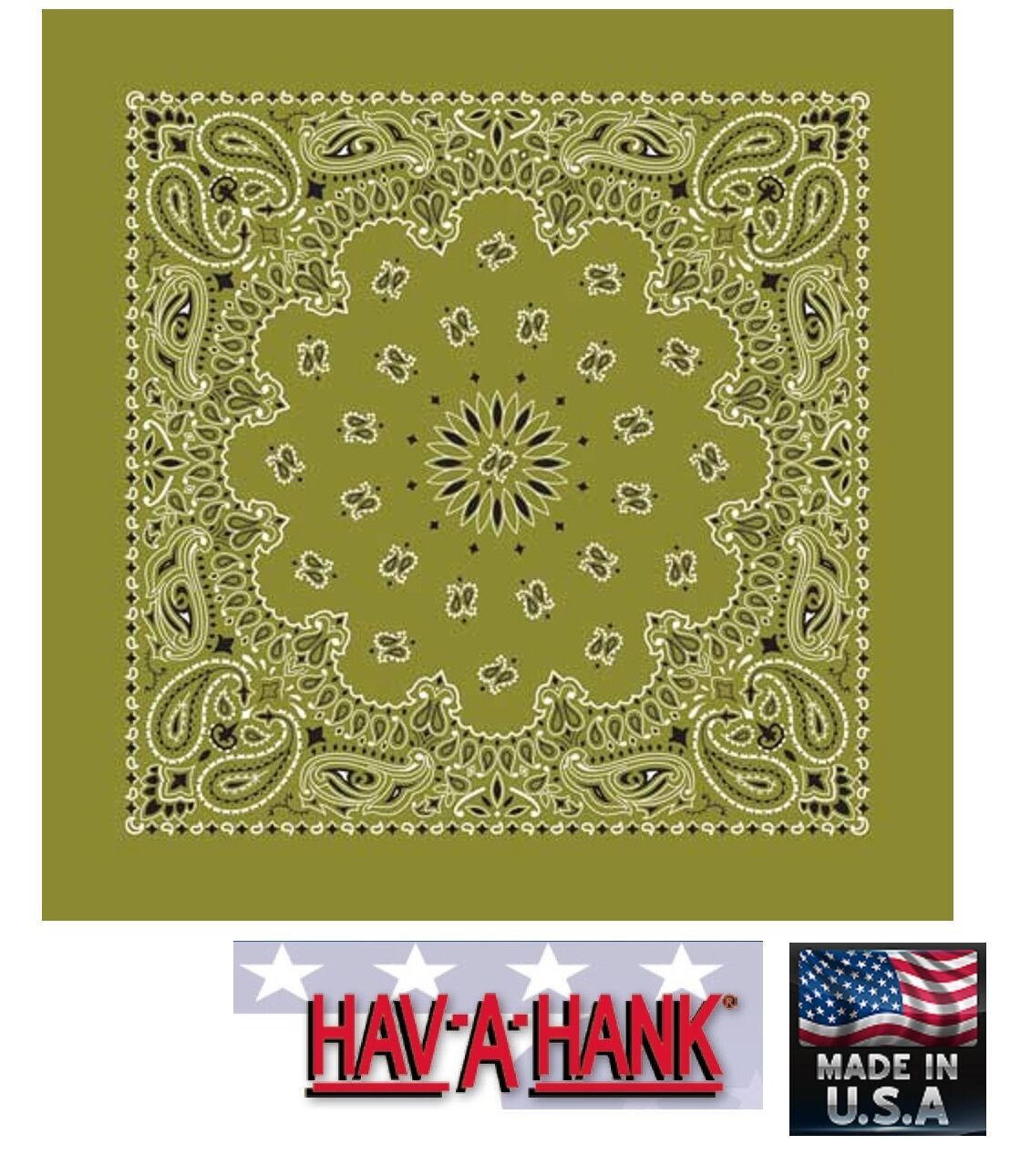 USA MADE Hav-A-Hank OLIVE GREEN PAISLEY BANDANA Face Mask Neck SCARF Head Wrap