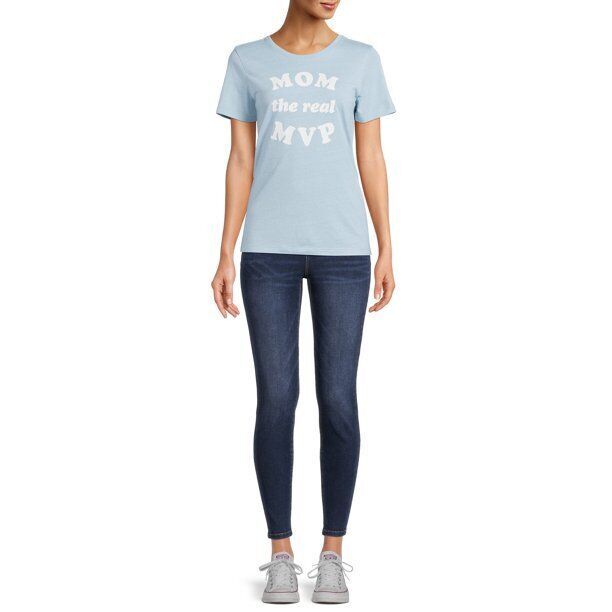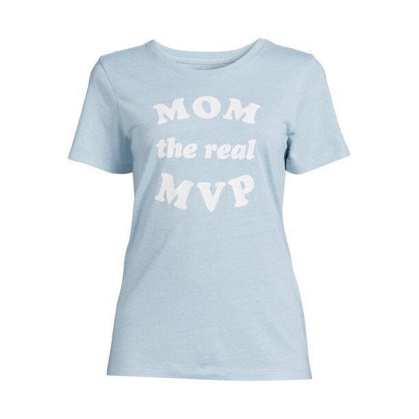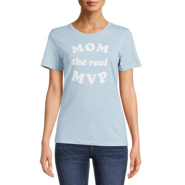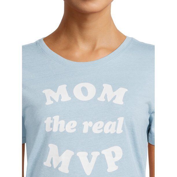 Way To Celebrate Women's 'Mom The Real MVP' Graphic T-Shirt Blue Size L(12-14)