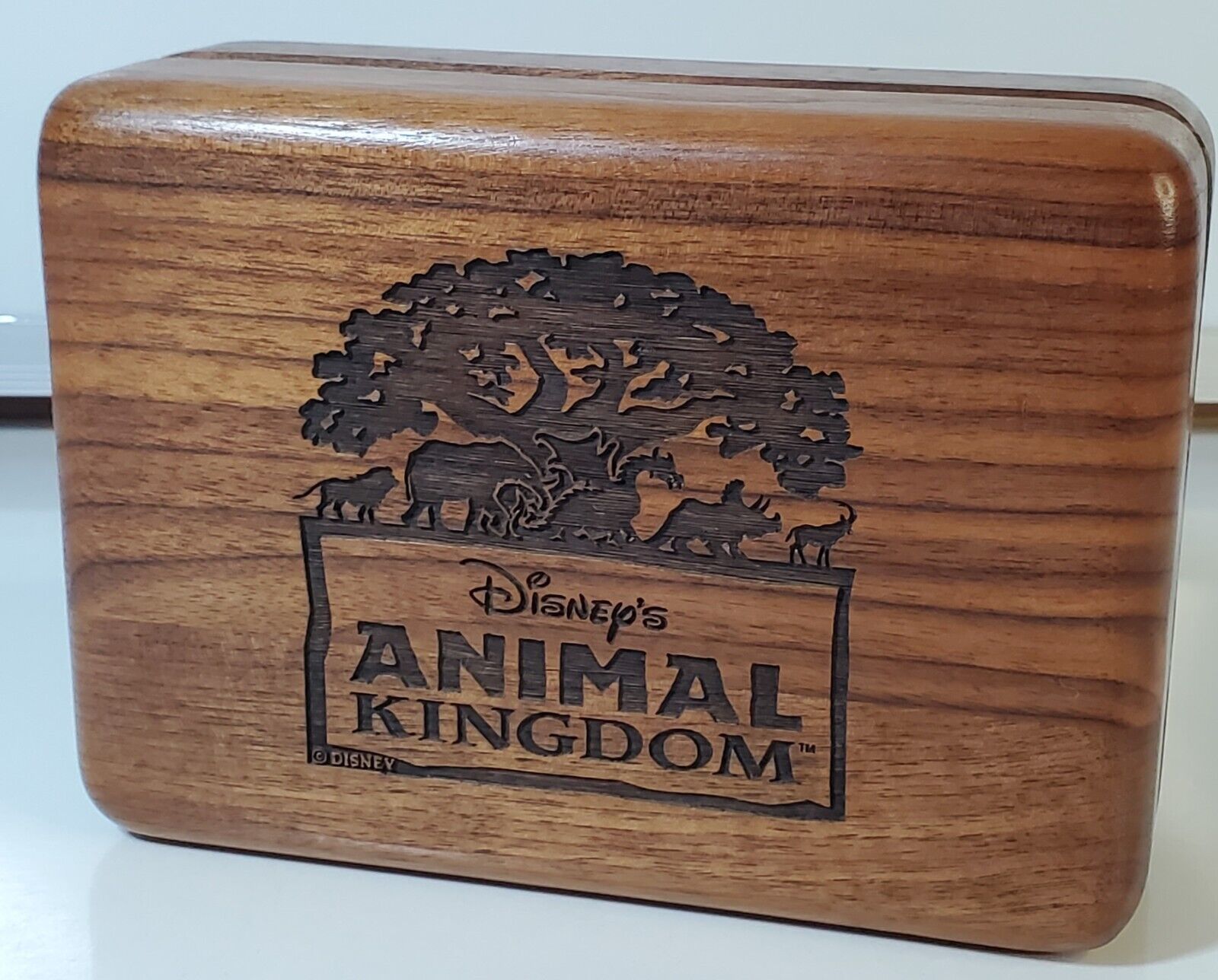 Disney Disneyana Wood Animal Kingdom Green Felt Velvet Lined Jewelry/Trinket Box