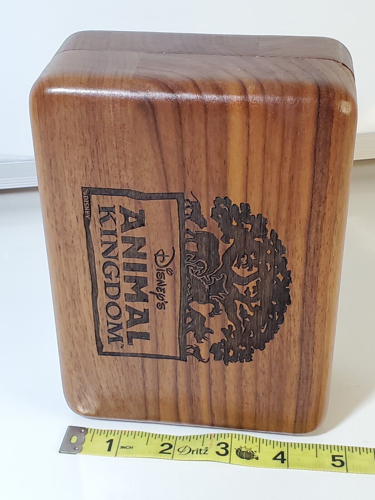 Disney Disneyana Wood Animal Kingdom Green Felt Velvet Lined Jewelry/Trinket Box B2