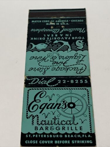 Vintage Matchbook Cover Egan’s Nautical Bar & Grill St. Petersburg Beach gmg