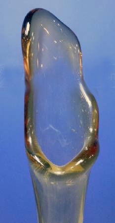 Tear drop base, and fluted beautiful neck and opening are so pretty and would make a beautiful center piece on a coffee table or fireplace, or entry hall.