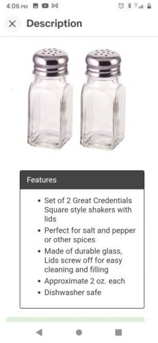 Restaurant type Salt and Pepper Shakers Stainless Tops Set of 2 Square Glass NU