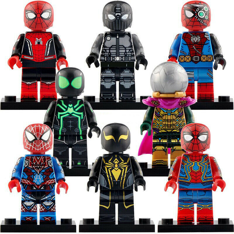 8pcs/set Spiderman Stealth suit Iron Spider MK2 Cyborg Mysterio Minifigures
