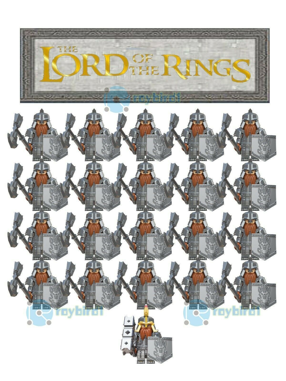 21Pcs The Lord Of The Ring Hobbit Red Beard Dwarf army with Axe Minifigures