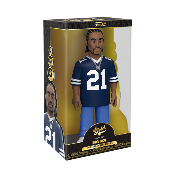 Go for GOLD in your music collection with the new Funko GOLD Big Boi premium vinyl figure. Big Boi is ready to join his OutKast member, Andre3000, while wearing his navy jersey for this 12-inch tall collectible. GOLD is the perfect way to commemorate some of your favorite, iconic music artists in your collection, and each figure comes in a sleek, display-ready box that is easy to stack with other GOLD collectibles. Vinyl figure is 12-inches tall.