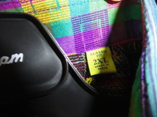 This shirt is a vintage piece with embroidered accents and a limited edition release. It is recommended to dry clean only to maintain its quality. The shirt is handmade in India and is perfect for casual occasions.