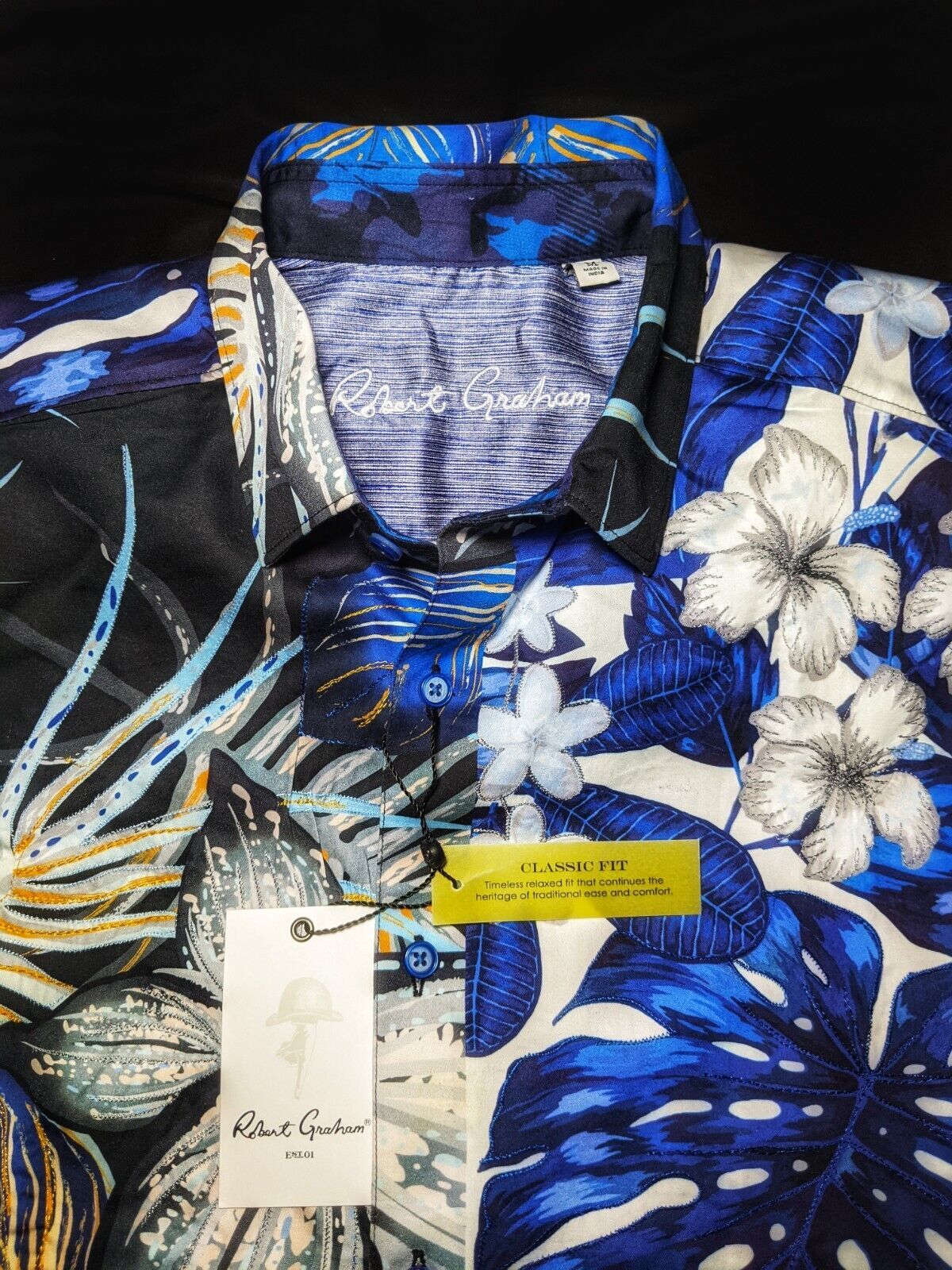 This is a new Robert Graham Moyie Spring short sleeve colorful shirt. Size Medium. Made in India. We ship Worldwide fully insured with signature required upon delivery.