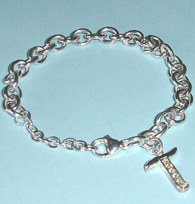 Lenox Jeweled Initial 'T' Letter Charm Sterling Silver Bracelet New
