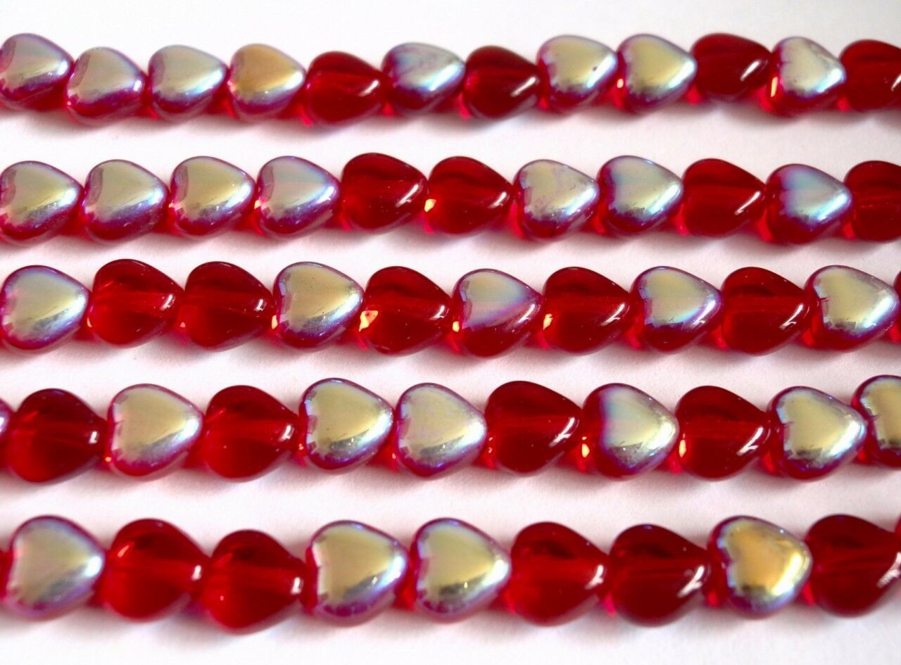 50 6x6mm Czech Glass Heart Beads: Siam/Ruby AB