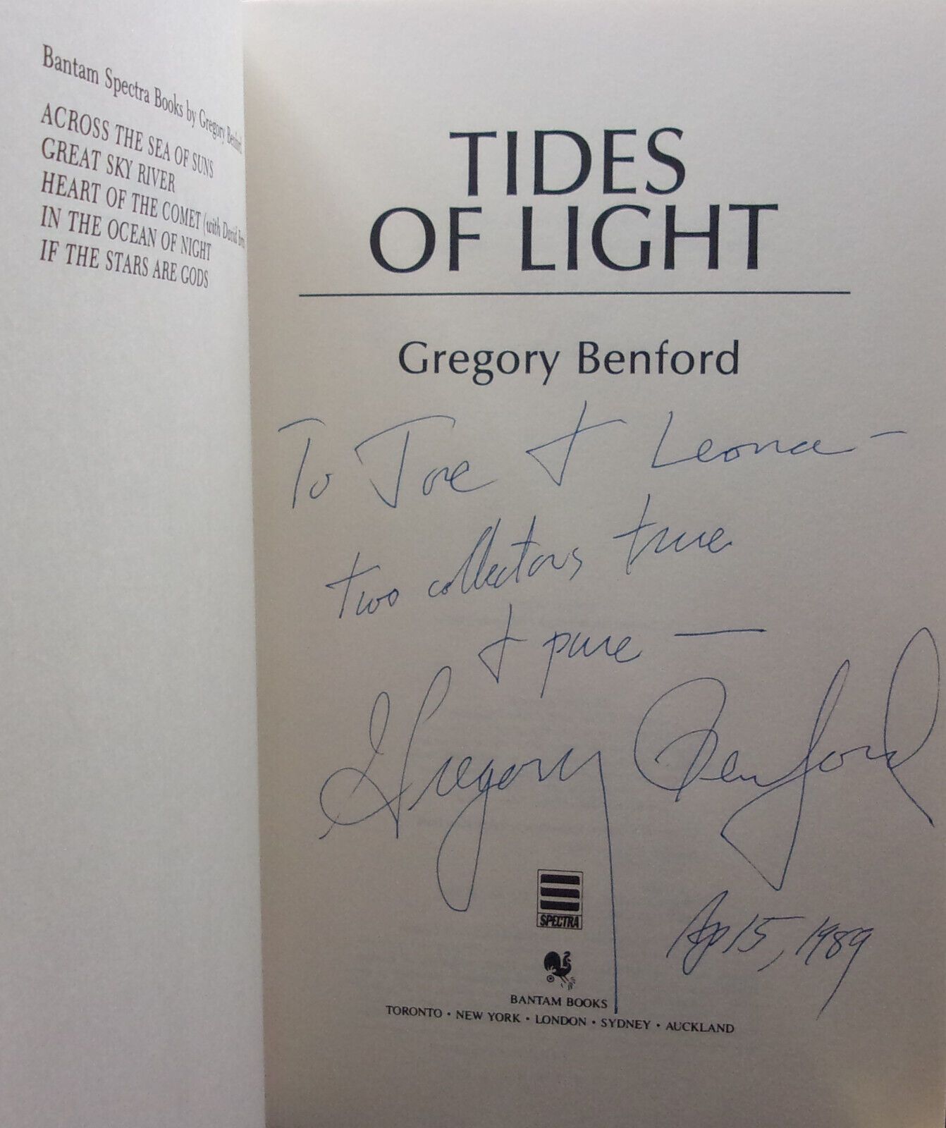 Gregory Benford TIDES OF LIGHT First edition SIGNED Fine Hardcover DJ Aliens SF