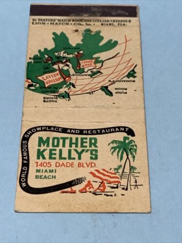 Front Strike Matchbook Cover Mother Kelly’s Miami Beach,Florida gmg