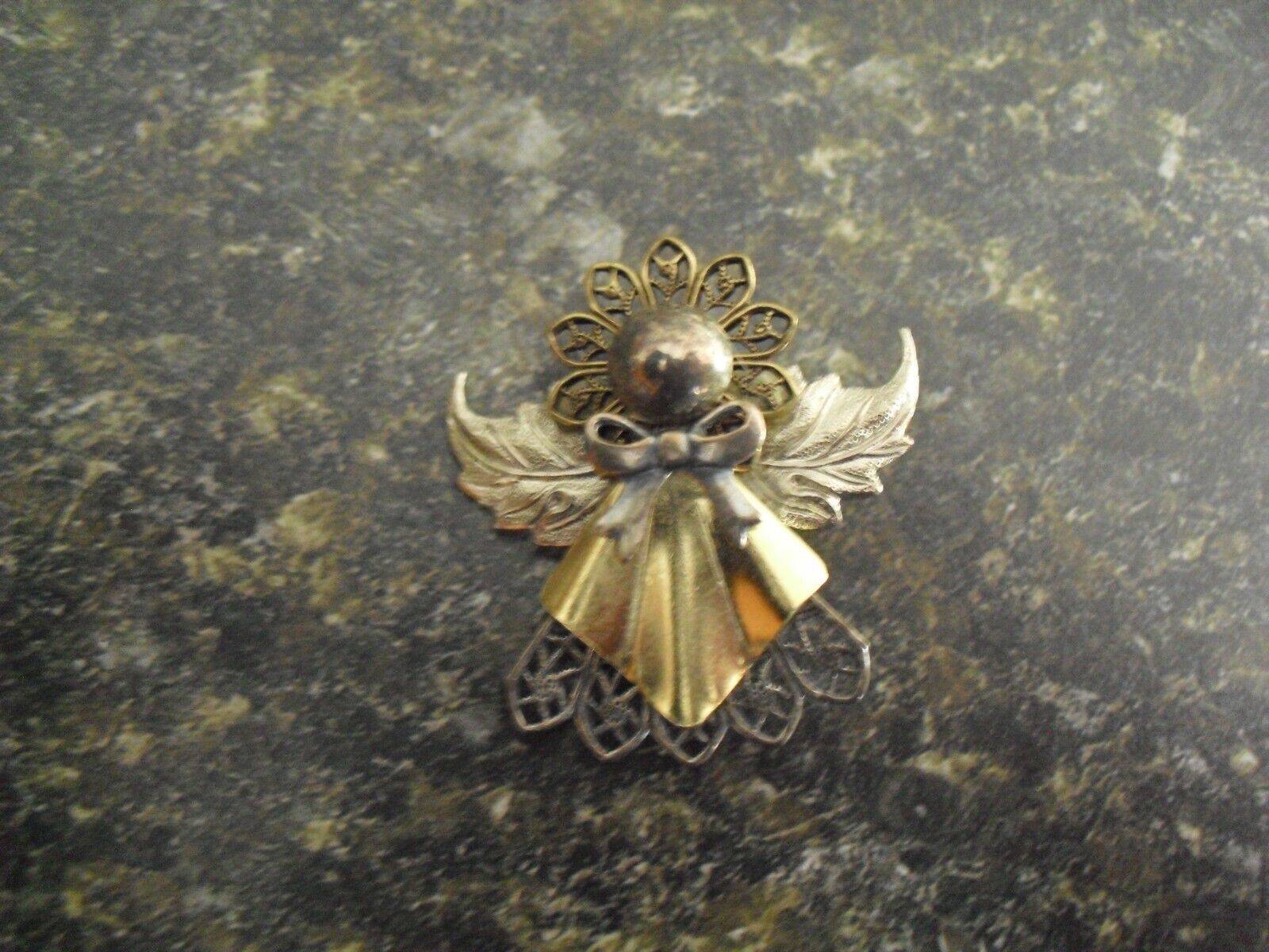 You are bidding on a cool, circa 1980s era, hard to tell, looks older, gold and silver tone metal, unknown metal content, holiday type angel, pin or brooch in the picture. 1 1/2 inches wide. Nice shape with light use and little signs of wear, maybe could use a careful cleaning. Zoom in for details.