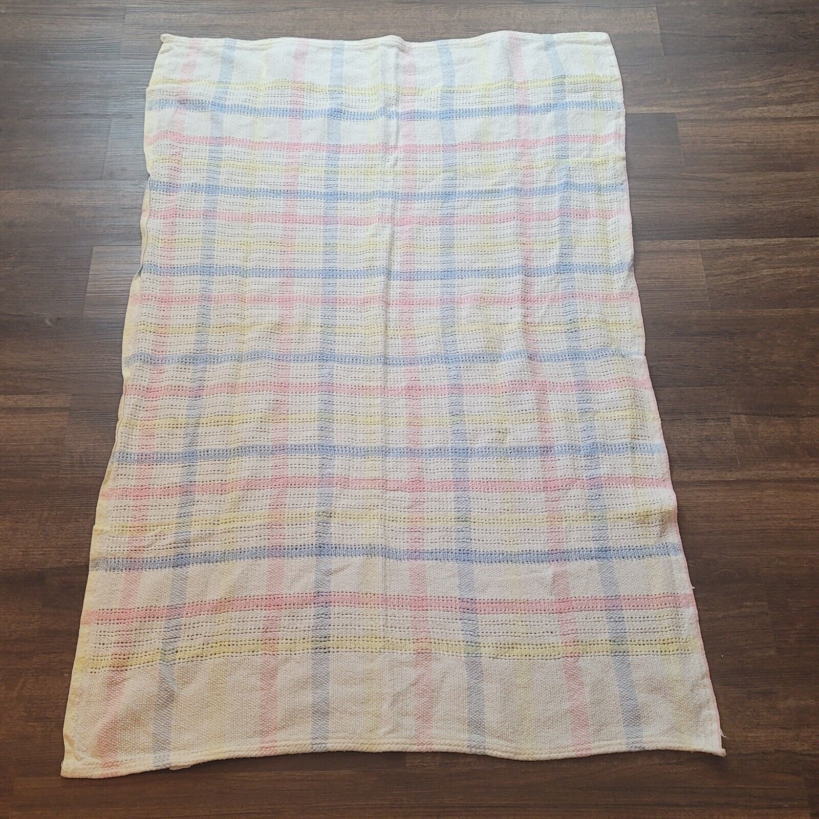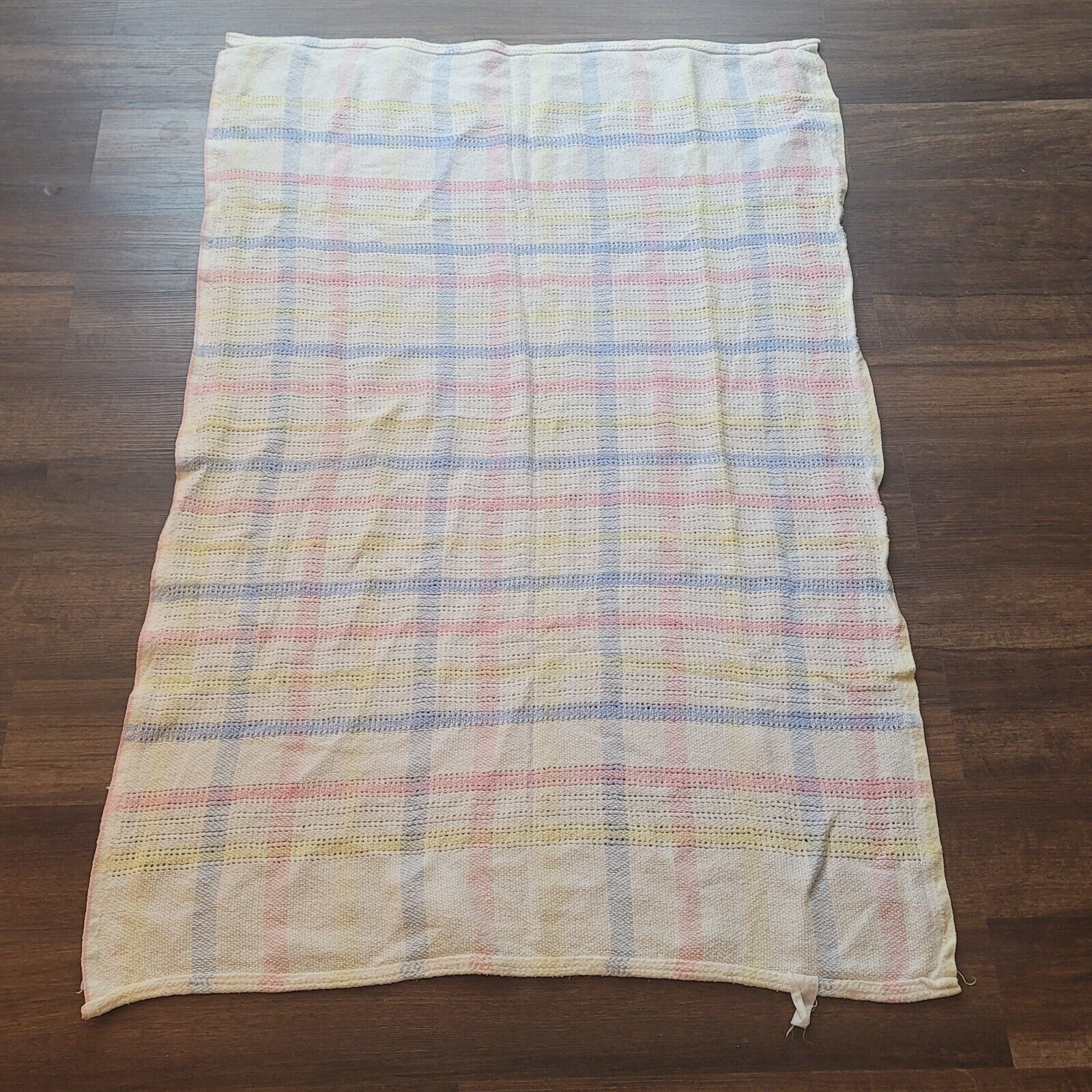 Vintage Beacon Thermal Baby Blanket Plaid 100% Cotton Waffle Weave Pastel