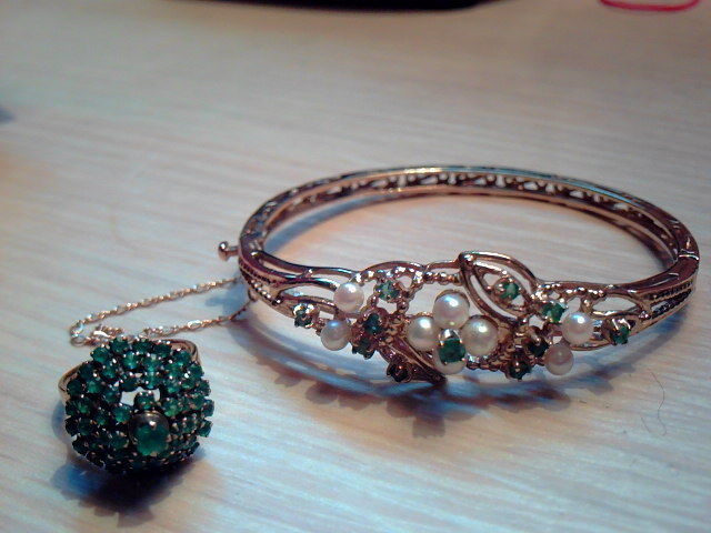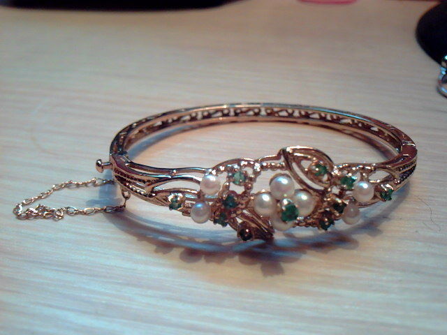 Vintage Beautiful 9 K Gold Pearl & Emerald and 10 similar items