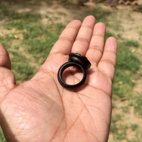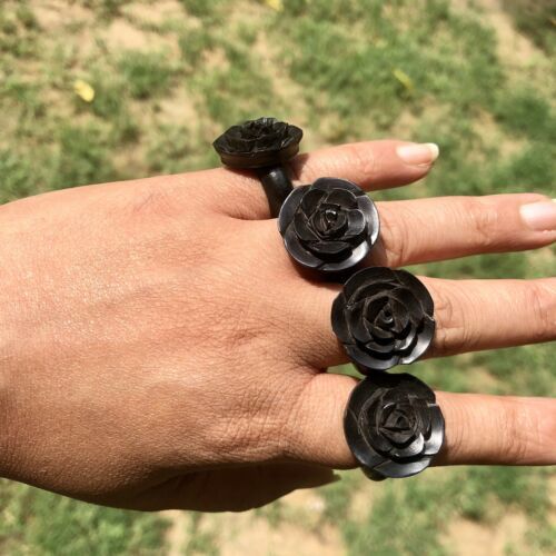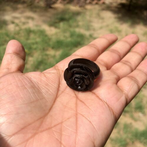 Ebony Wood Rose Flower Carved Ring, 20 mm dia, US 8 Ring Size D1