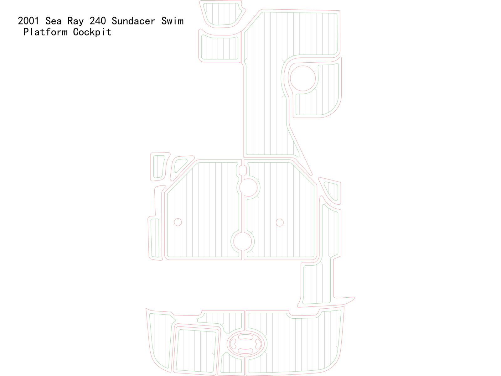 This listing is for one set of 2001 Sea Ray 240 Sundacer Swim Platform Cockpit Boat EVA Faux Teak Deck Floor Pad as shown in the listing drawing.We will only use the listing decking drawing for your order fabrication. The listing decking photos are for reference only.