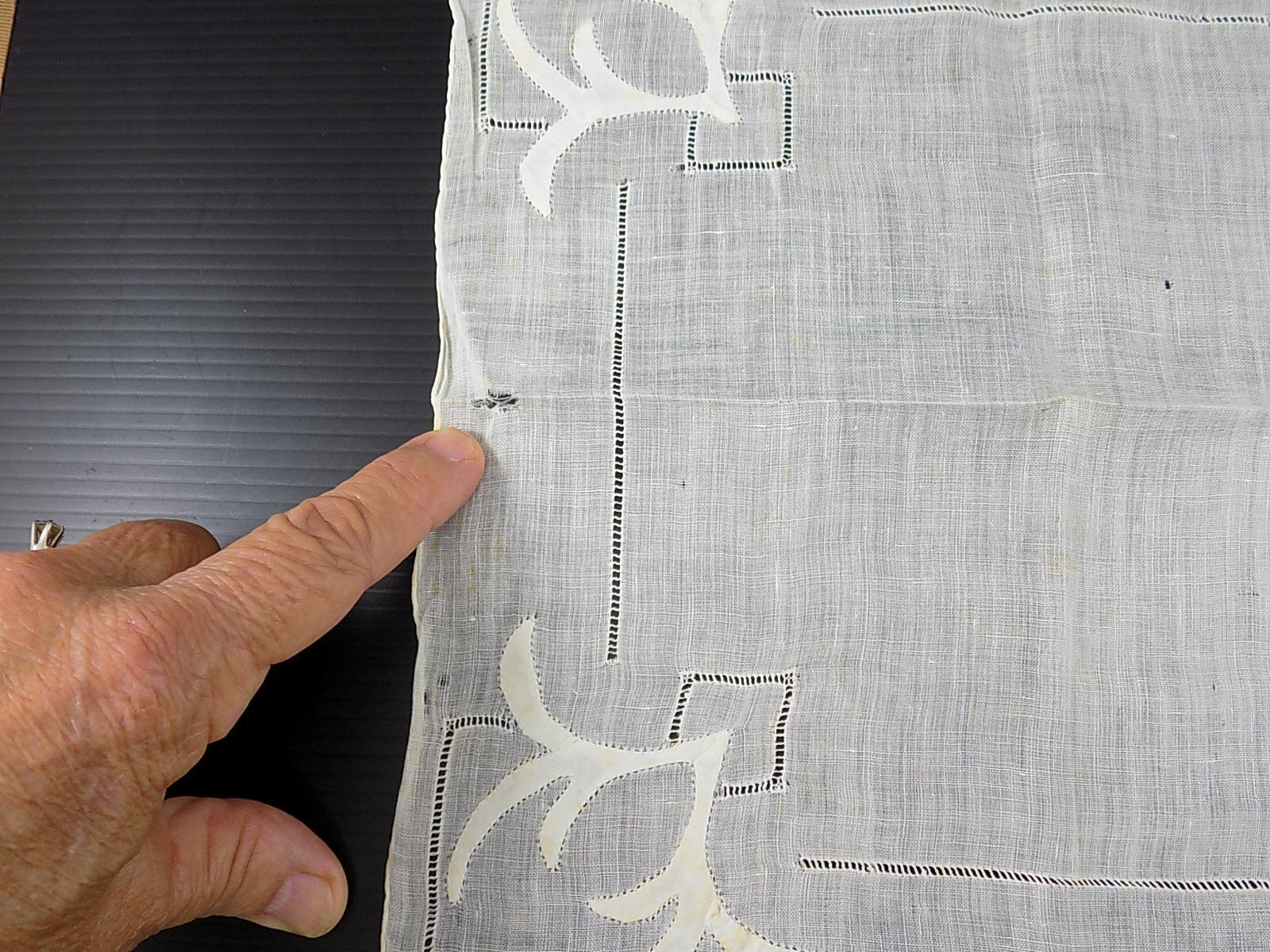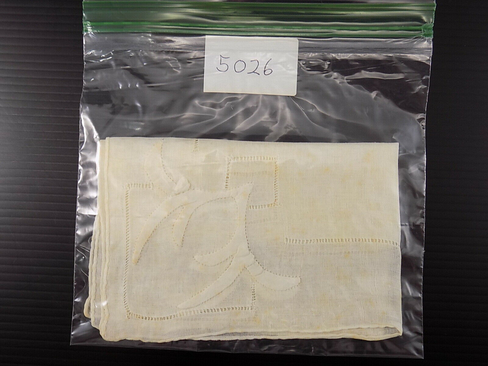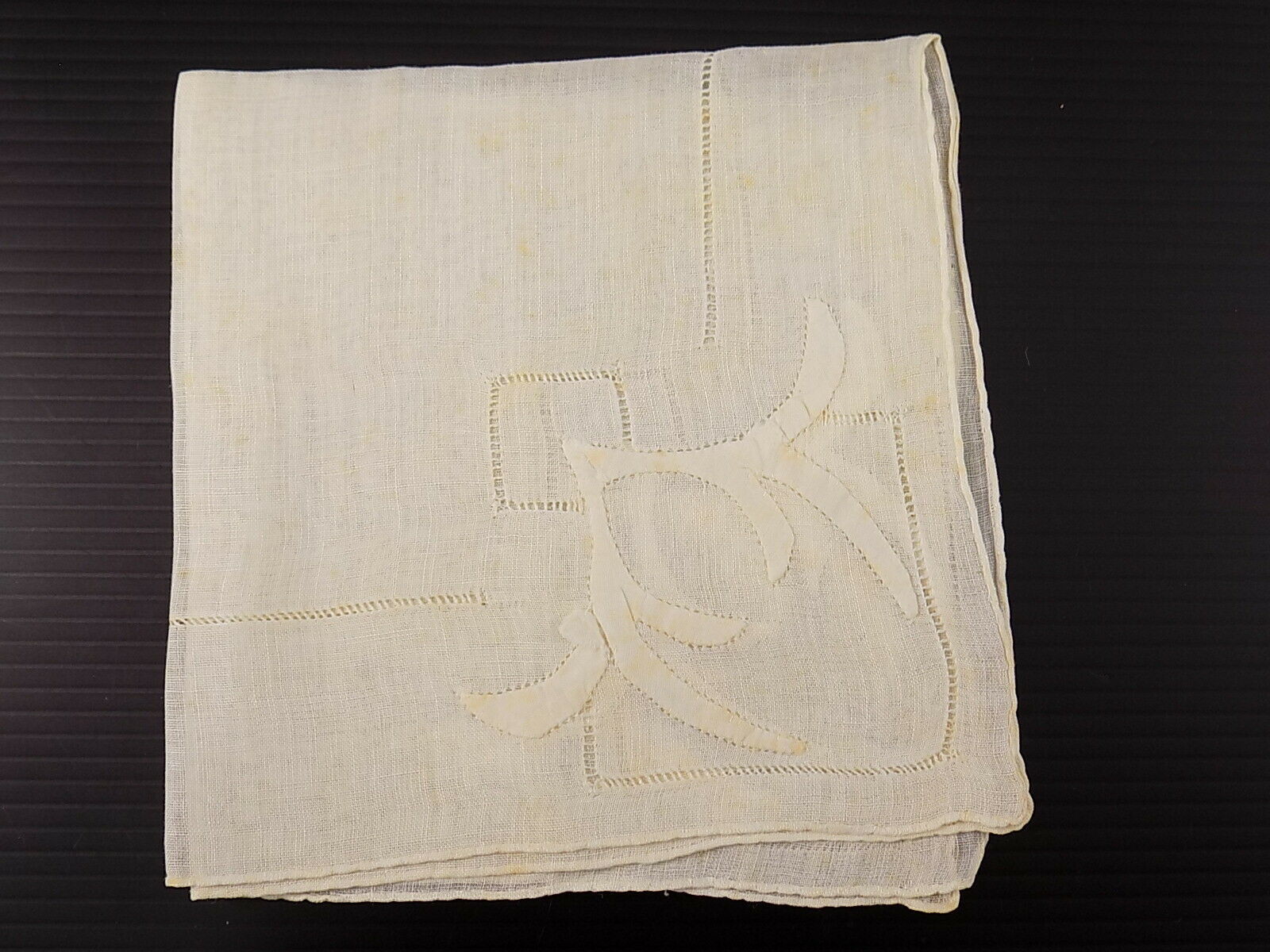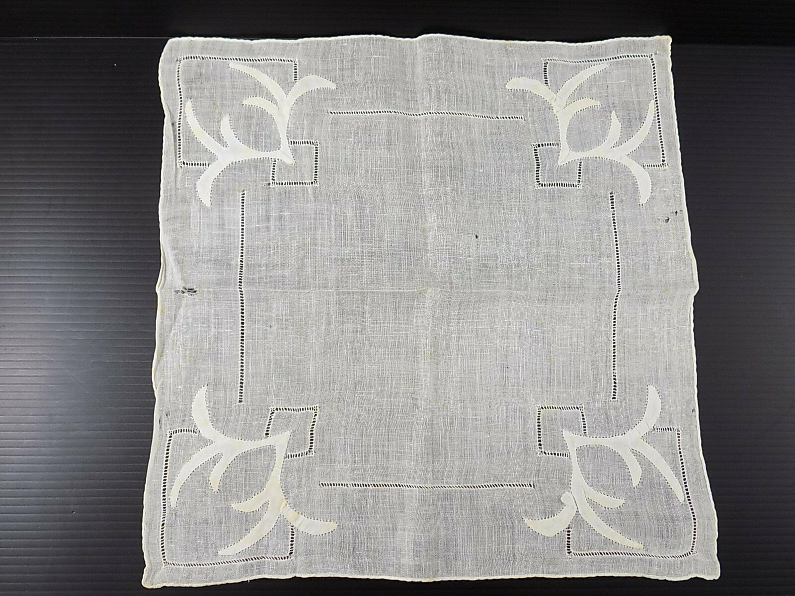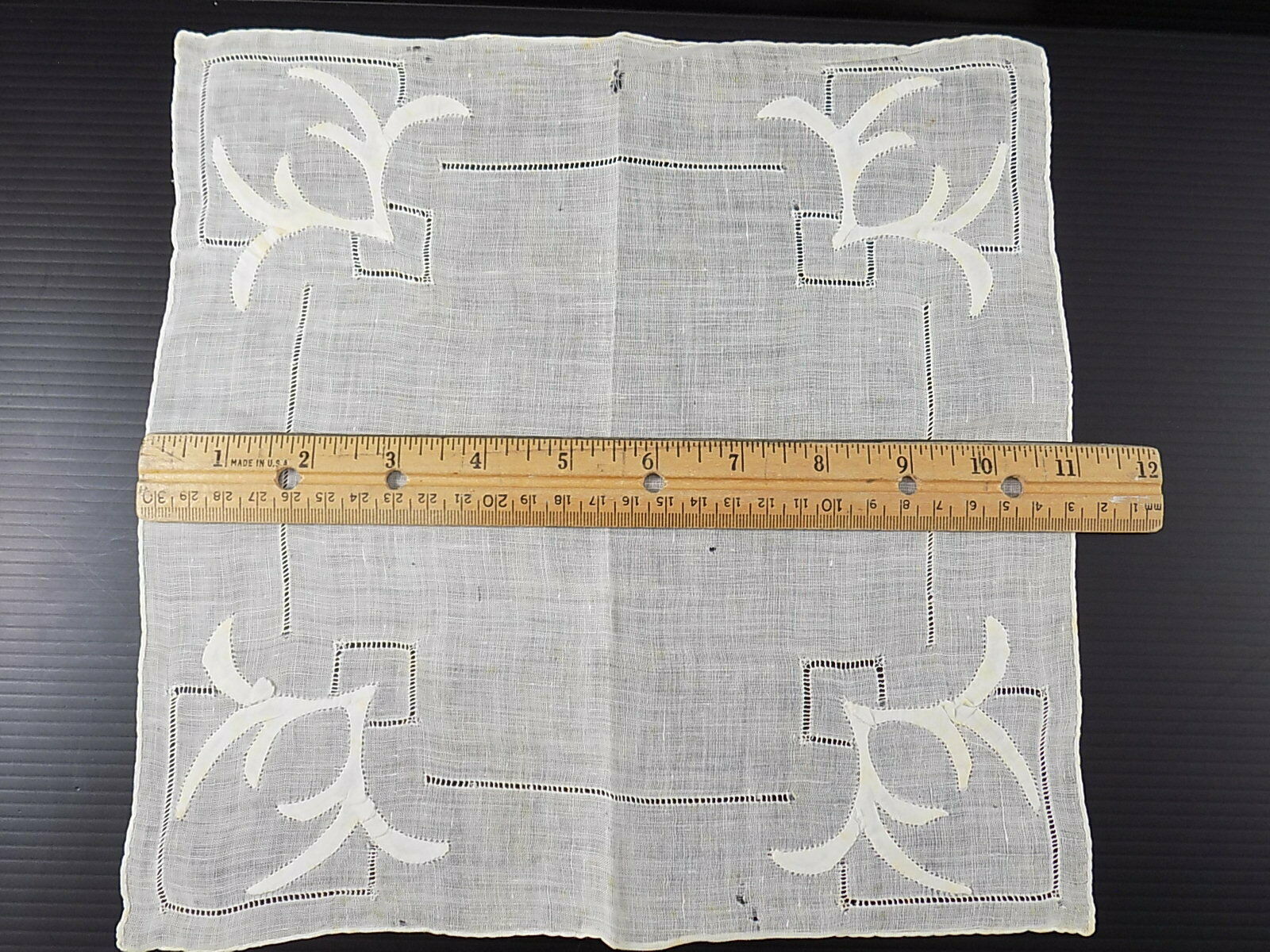 Vintage WHITE HANDKERCHIEF HANKIE Unique Applique Corners & Cut Work 11 x 11"