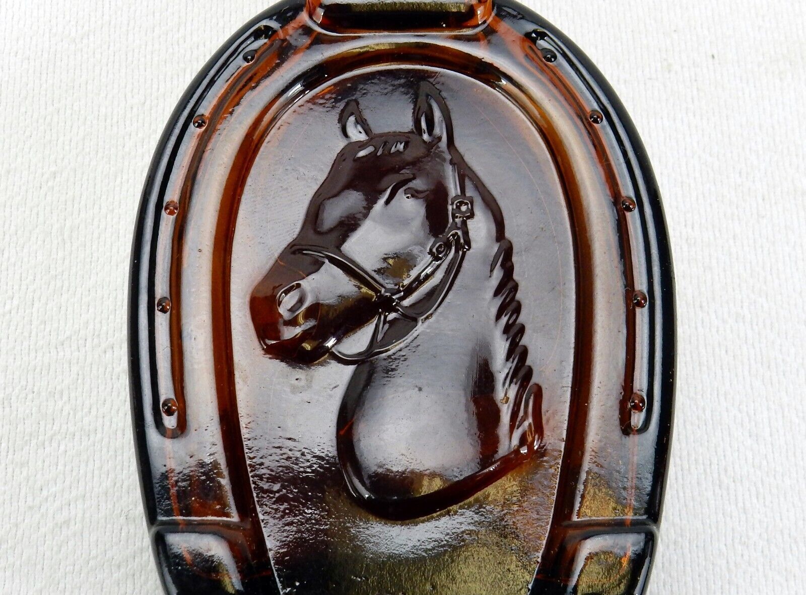 Avon decanter with horseshoe shape and embossed horse head