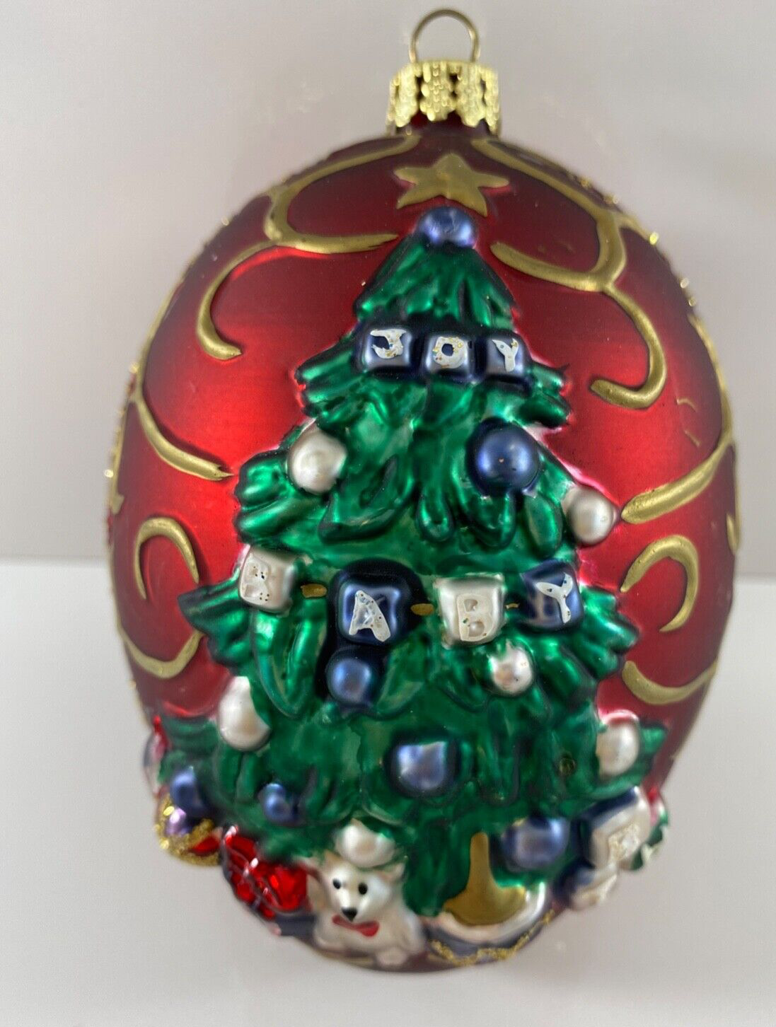 Vintage Ameri Christmas Large Red Egg JOY BABY 5 in Christmas Ornament